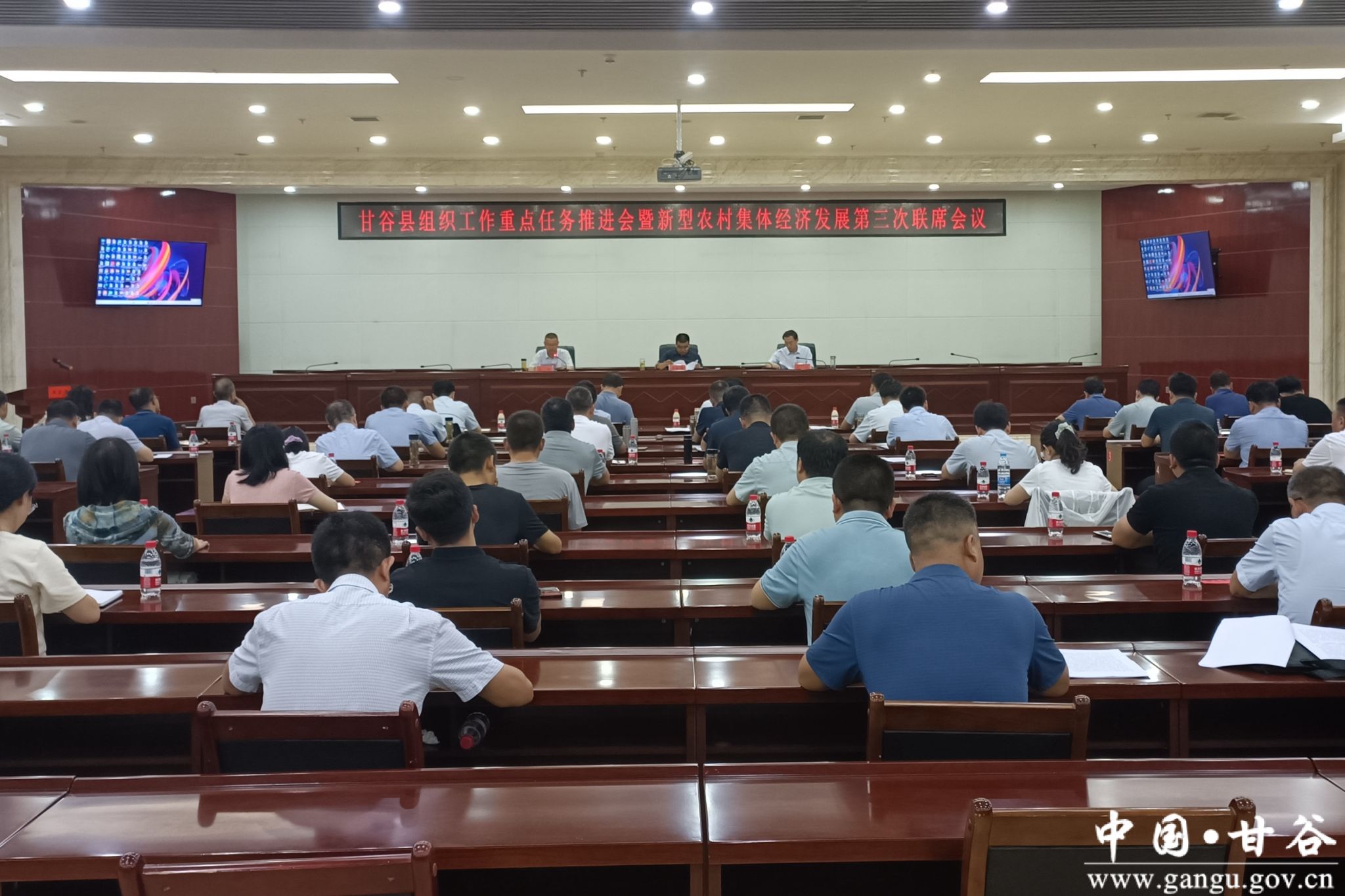 8月11日,甘谷县召开全县组织工作重点任务推进会暨新型农村集体经济发展第三次联席会议,传达学习全市抓党建促乡村振兴重点工作观摩评查暨县区组织工作座谈会精神,进一步动员各乡镇和相关部门紧扣全年目标任务,工作再加力、责任再靠实、措施再强化,努力推动全县村级集体经济和基层党建工作再上新台阶。
