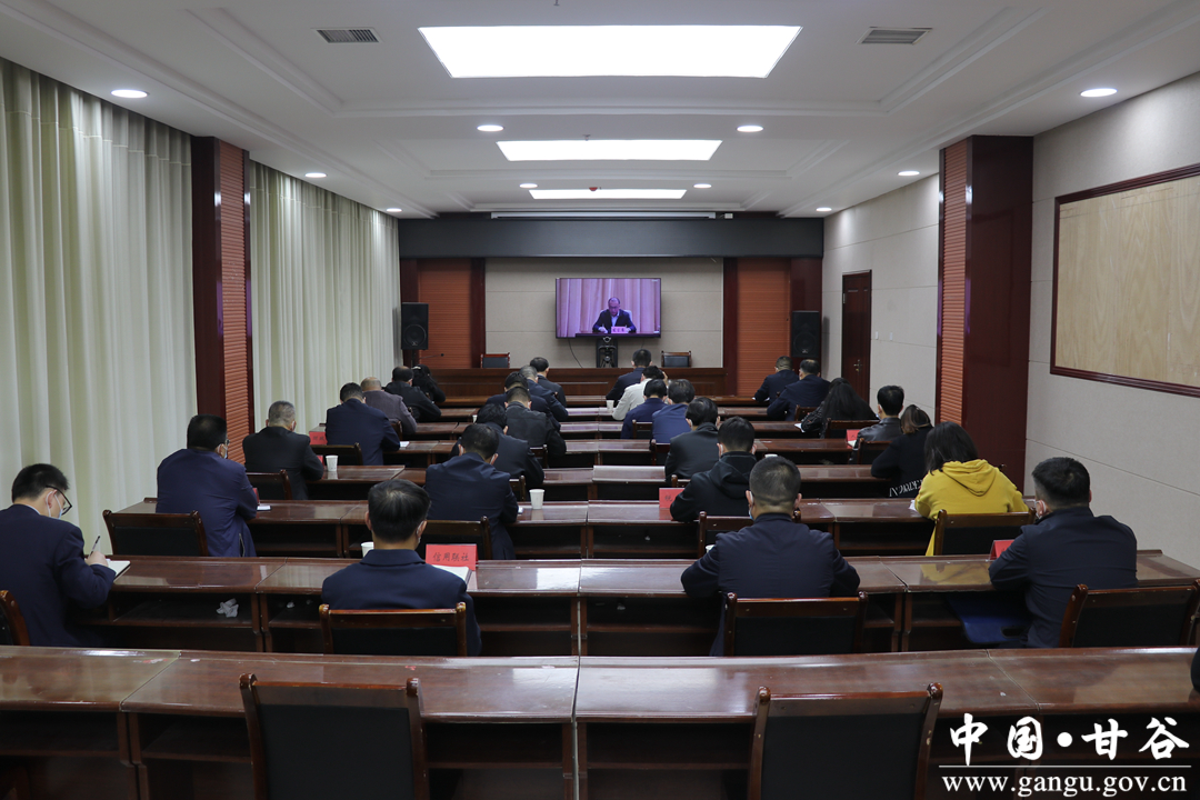 会议以视频形式开至县一级。县委副书记、县长孙忠平,县委常委、政法委书记杜兴,县委常委、副县长蔺森山,副县长霍艳平在甘谷分会场参加会议。