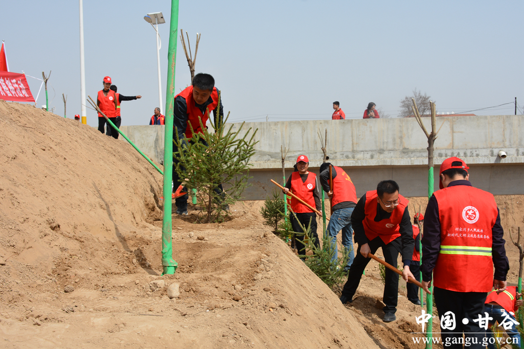 活动现场,干部群众密切配合、衔接紧密,在相关人员的指导下,挖坑的挖坑,栽树的栽树,浇水的浇水,既有欢声笑语,又井然有序,不一会儿功夫,几排树苗就矗立在了山坡上、道路旁。本次所植树种主要为云杉和大叶女贞,共计1800棵。