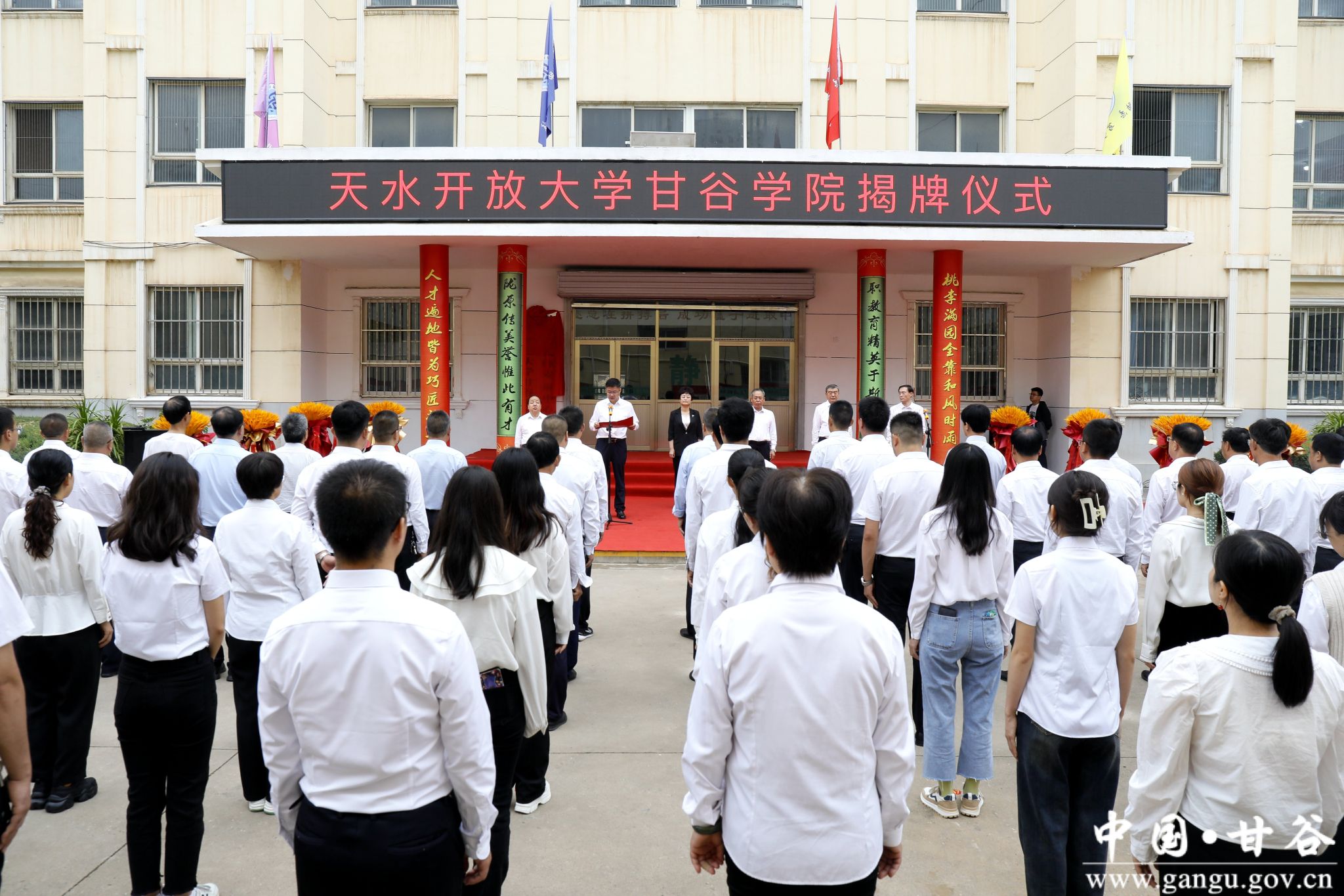仪式上,汪小娟与孙忠平为天水开放大学甘谷学院、甘谷县教师发展中心揭牌。同时宣读了《天水开放大学综合改革工作领导小组办公室关于推进天水开放大学县区学院更名转型工作的通知》、甘谷县人民政府关于同意甘肃广播电视大学甘谷工作站更名为天水开放大学甘谷学院的批复》。