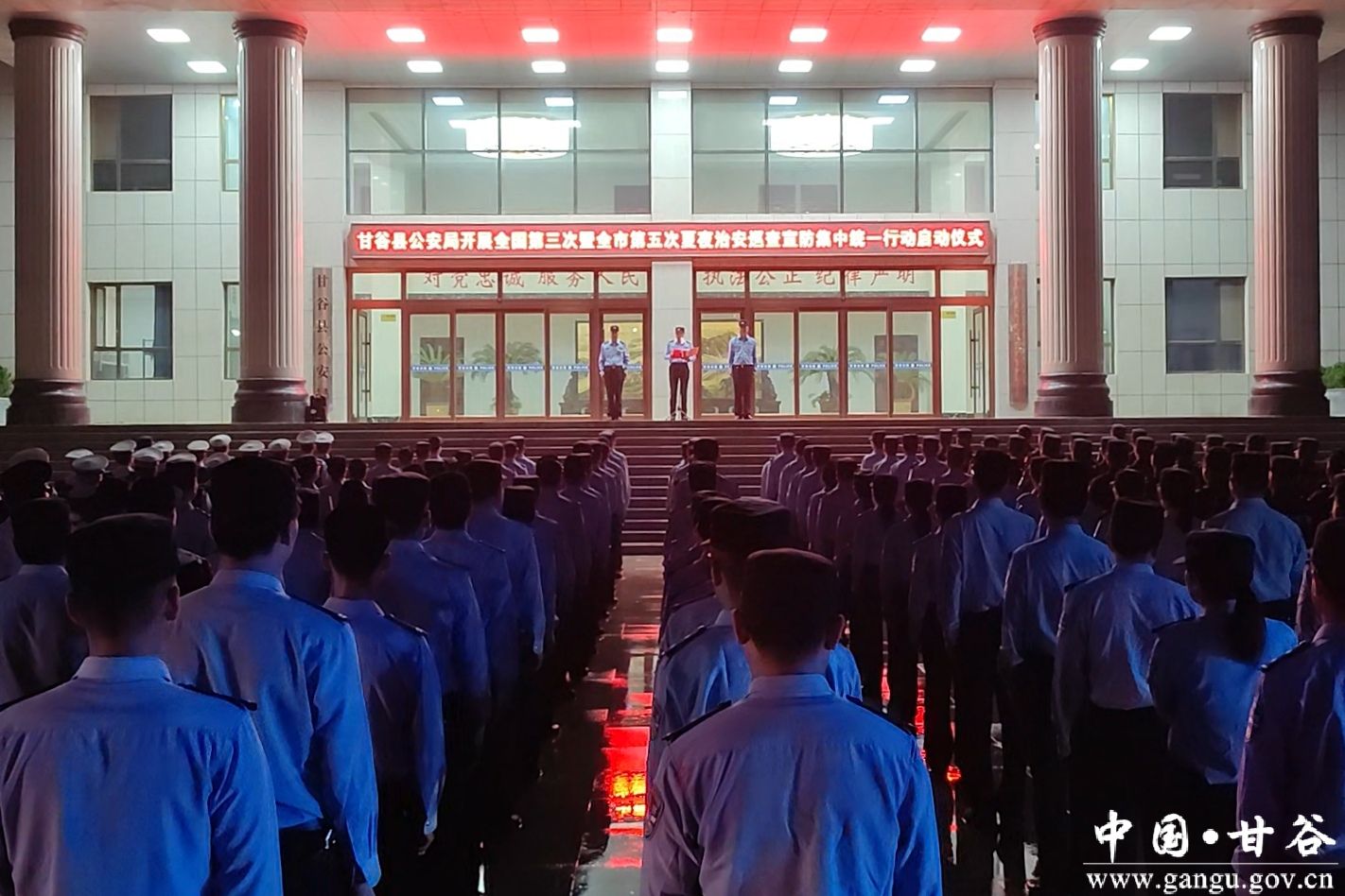 按照上级公安机关夏季治安打击整治行动统一部署,9月8日晚,甘谷县公安局组织开展第五次夏夜巡查宣防集中统一行动,进一步动员全体民警辅警坚决投身夏季治安打击整治行动,以决战姿态打好“攻坚战”,以实际行动织密“平安网”,全力维护全县治安大局持续稳定。副县长、县公安局党委书记、局长张涛作动员讲话,并宣布行动正式启动。