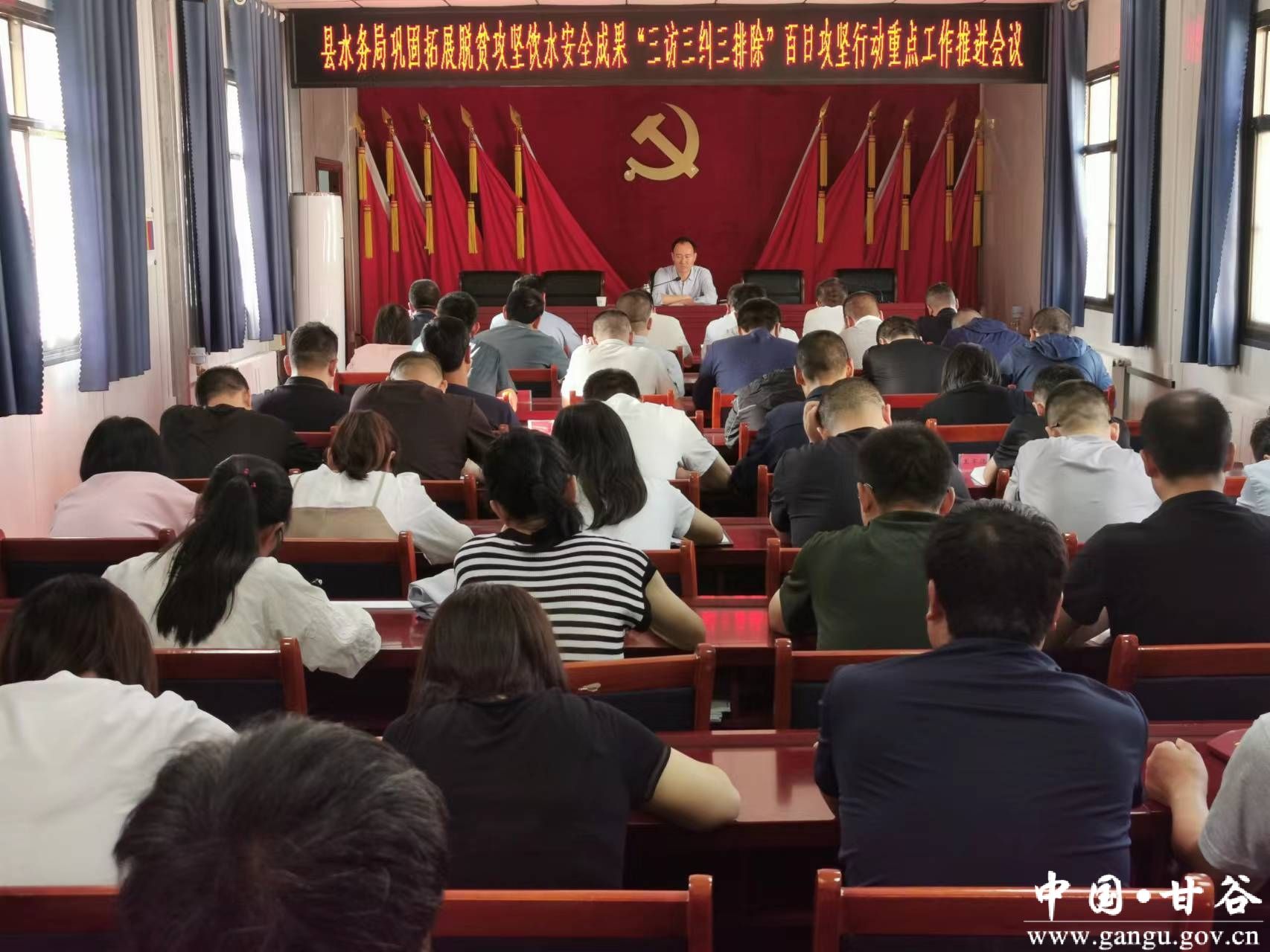 近日,甘谷县水务局召开巩固拓展脱贫攻坚饮水安全成果“三访三纠三排除”百日攻坚行动暨省级督查反馈问题整改重点工作推进会议,会议由局党组书记、局长王继福主持,局党组成员、科级领导干部、各供水站站长、机关全体干部职工共计60余人参加会议。