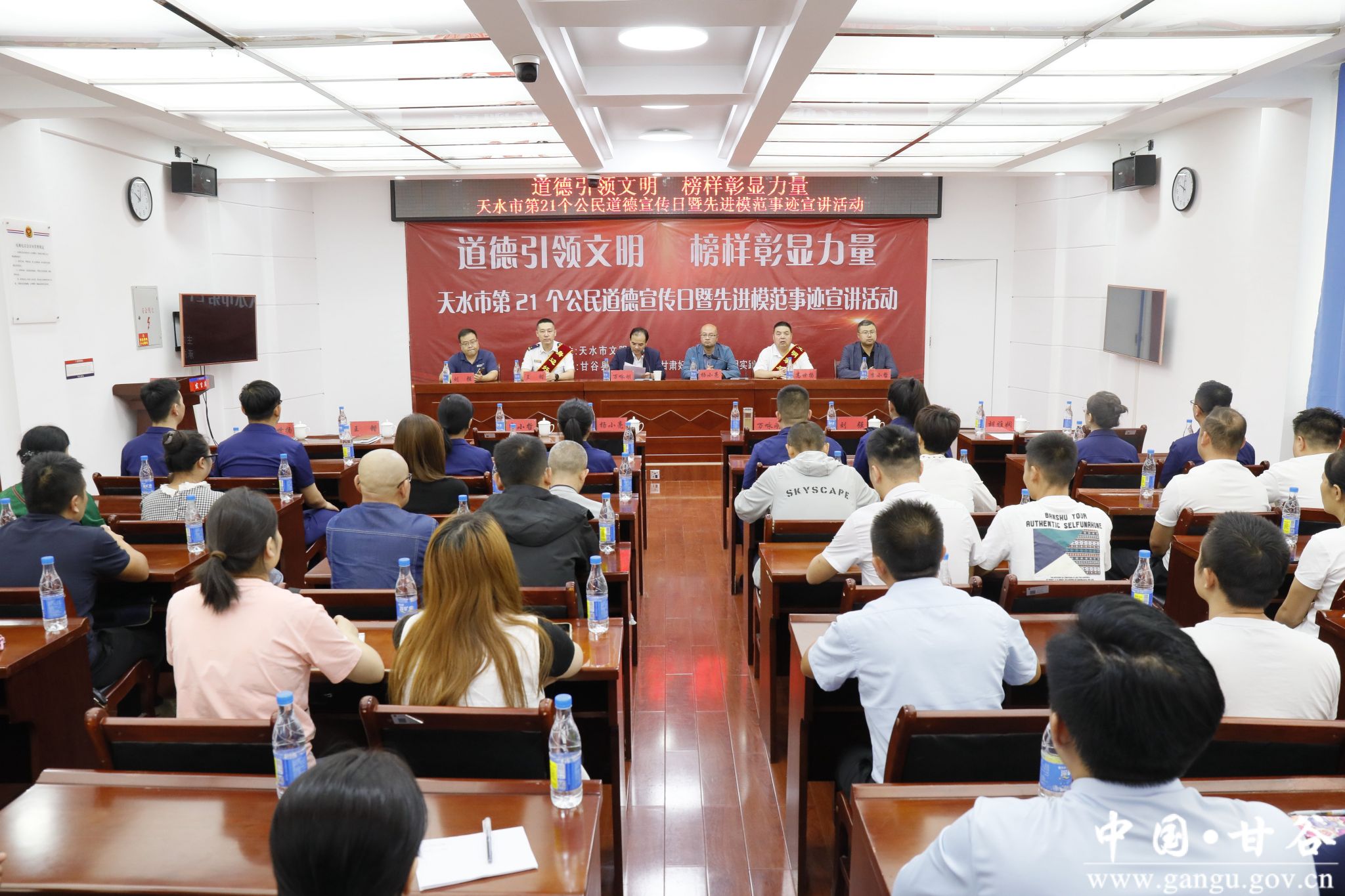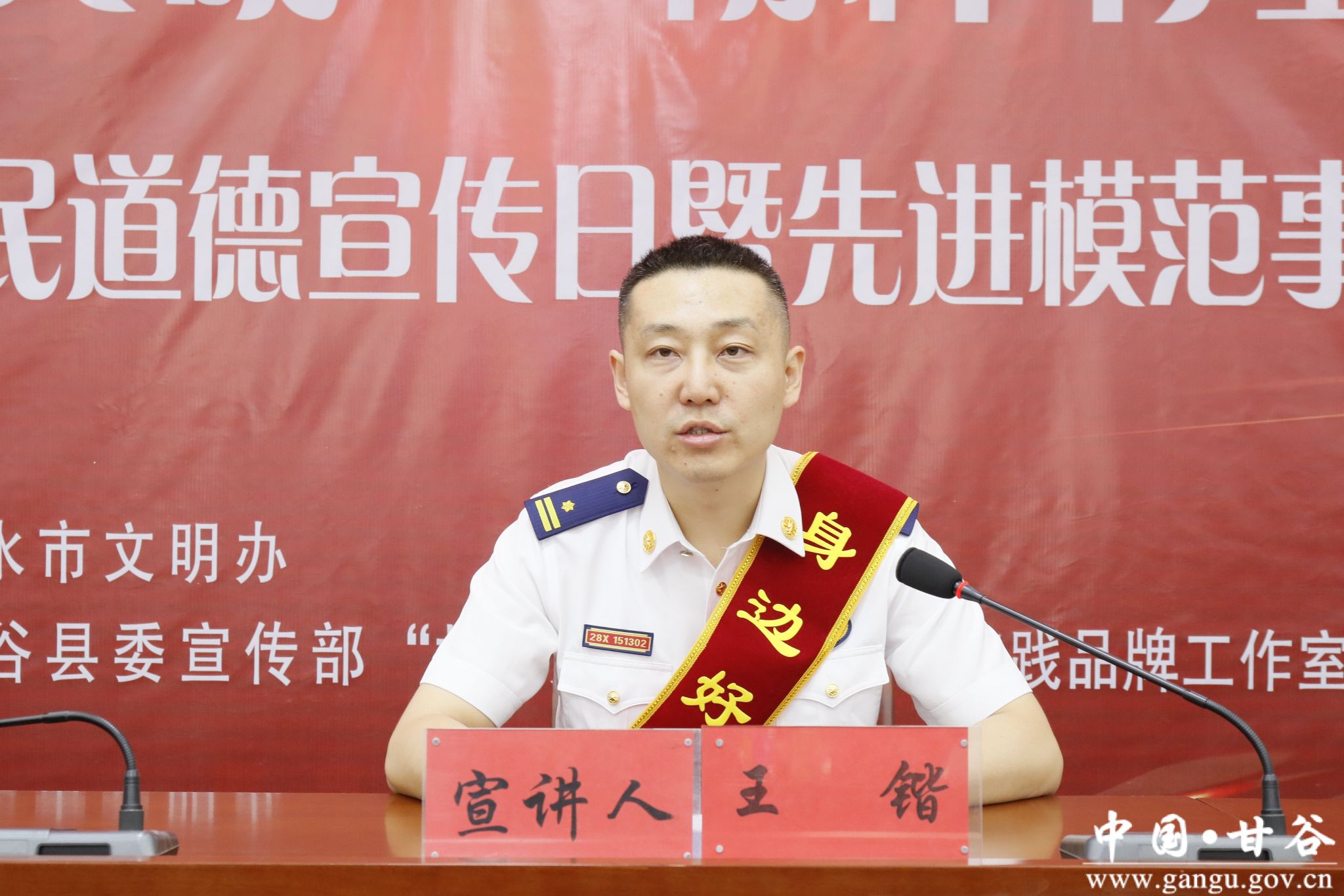 9月14日,由市文明办、县委宣传部、“甘肃好人”王锴文明实践品牌工作室联合组织开展“道德引领文明、榜样彰显力量”——天水市第21个公民道德宣传日暨先进模范事迹宣讲活动在甘谷县举行。天水市文明办副主任万咏刚主持会议。