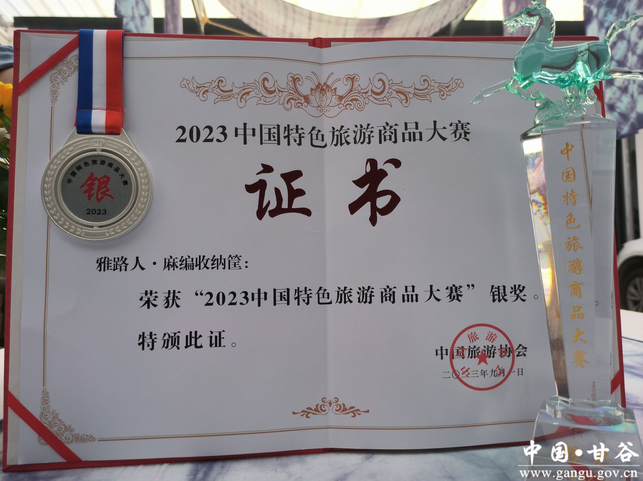 近日,2023中国特色旅游商品大赛颁奖仪式在国家会展中心(天津)举行,甘谷县选送的甘肃雅路人麻编工艺制品发展有限公司的《雅路人·麻编收纳筐》荣获大赛银奖。