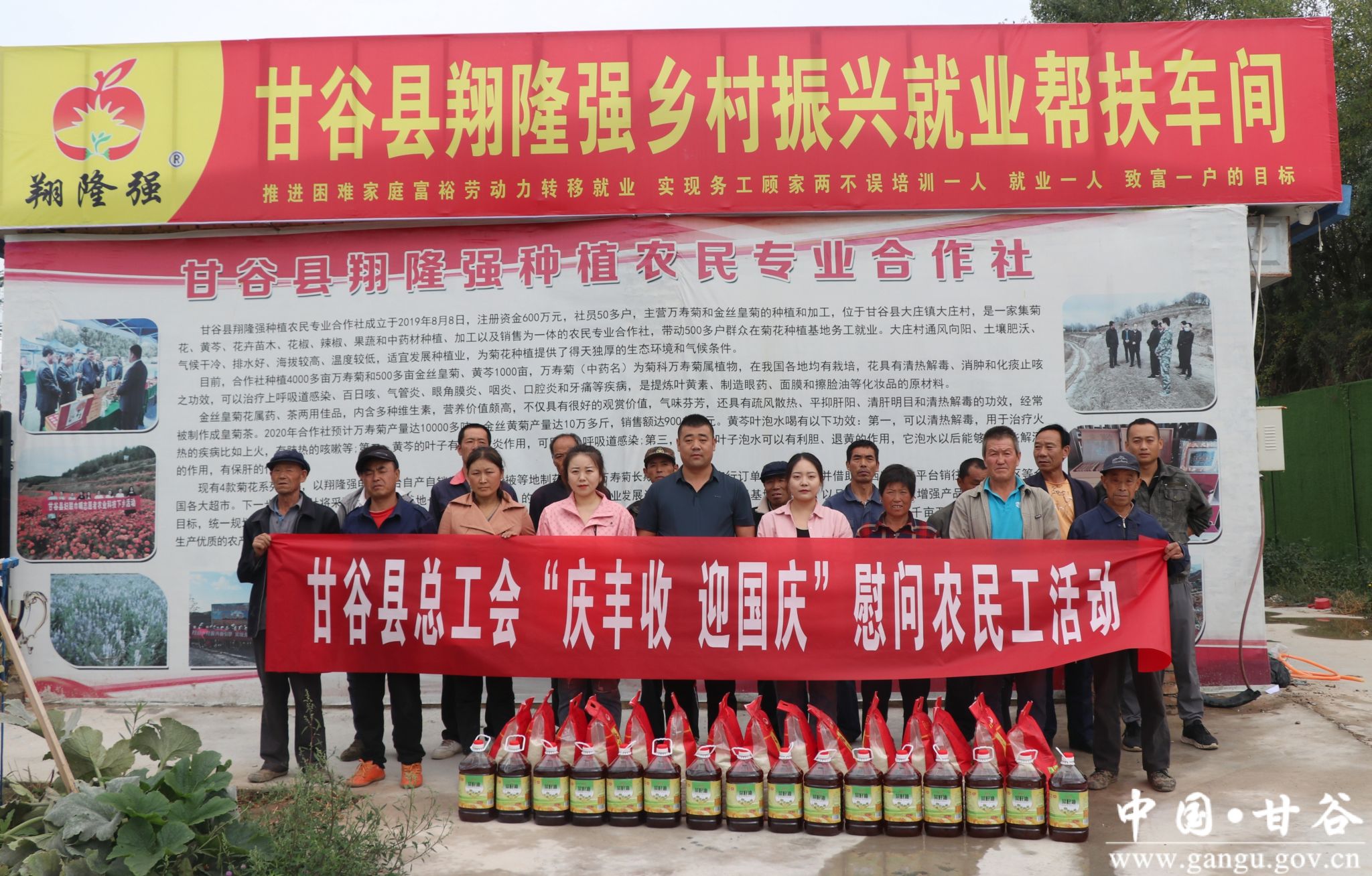 仓廪实而知礼节,衣食足而知荣辱。为充分展示乡村振兴取得的喜人变化和巩固脱贫攻坚取得的丰硕成果,进一步提升广大农民的获得感、幸福感和光荣感,充分激发农民群众创造美好生活的干劲,近日,甘谷县总工会深入翔隆强种植农民专业合作社开展“庆丰收 迎国庆”慰问农民工活动,共享丰收喜悦。