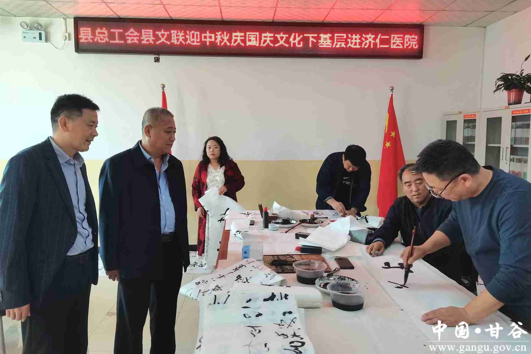 近日,在中秋、国庆“双节”来临之际,甘谷县总工会携手甘谷县文学艺术界联合会来到甘谷县济仁医院工会,以“迎中秋·庆国庆1”文化下基层为主题开展活动,用笔墨向基层一线的劳动者致敬。