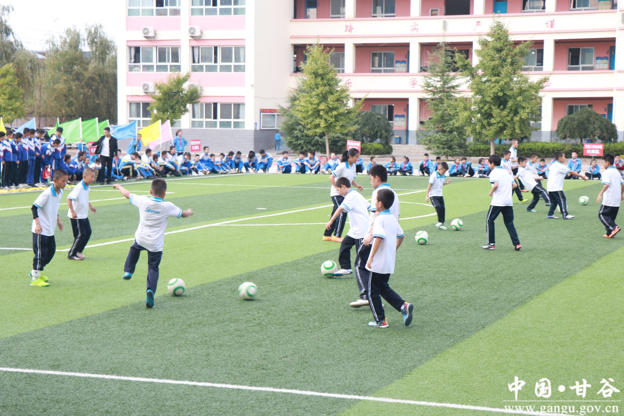 9月28日,甘谷县中小学足球社区活动启动仪式在大像山镇杨场小学隆重举行。县政府教育督导室专职督学程芳军、县教育教学教研室主任陈金卫、大像山镇杨场小学党支部书记、校长丁永强,县教研室相关人员,和来自西关中学、康庄初中、模范初中、新兴初中、磐安初中、十里铺初中、甘谷六中豹子坪校区、甘谷六中十甲校区、甘谷三中初中部、六峰初中、土桥初中、甘谷五中、杨场小学的带队老师和学生共计120余人参加了活动。