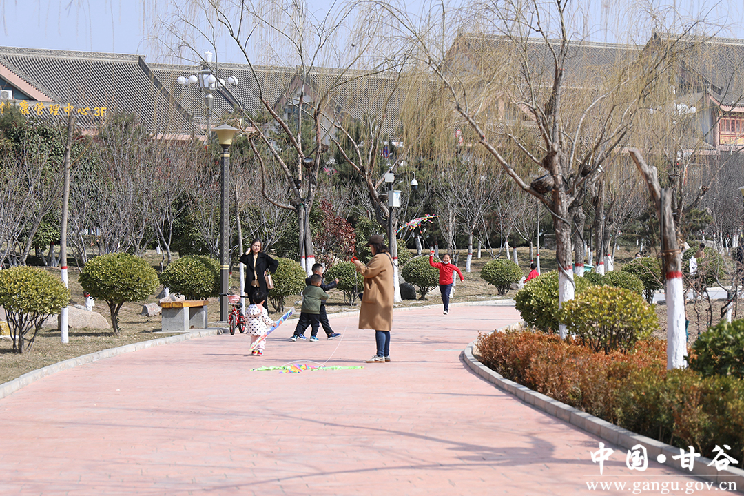 孩子们在步道上尽情玩耍,享受着春日的阳光给他们带来的快乐。清透的天空仿佛成了画板,五颜六色的风筝争先恐后地飞向天空,更加增添了春天的气息。