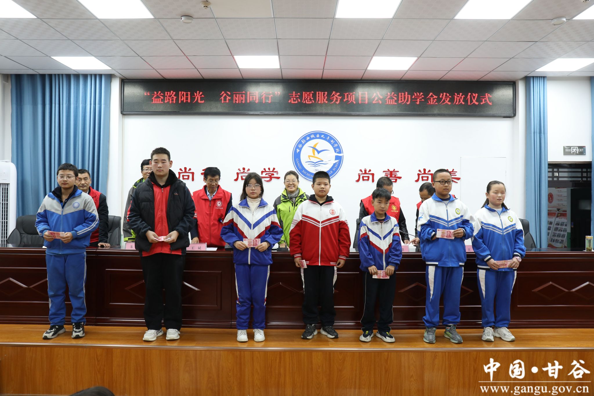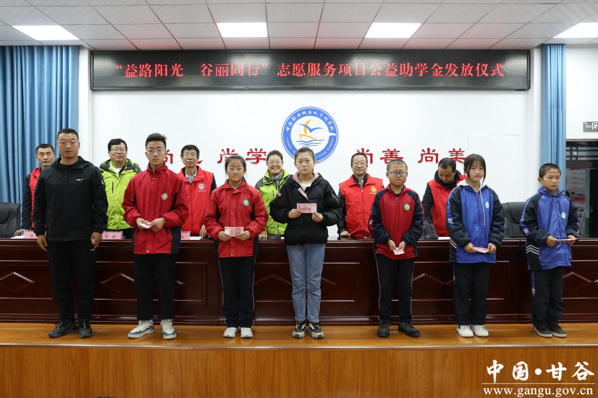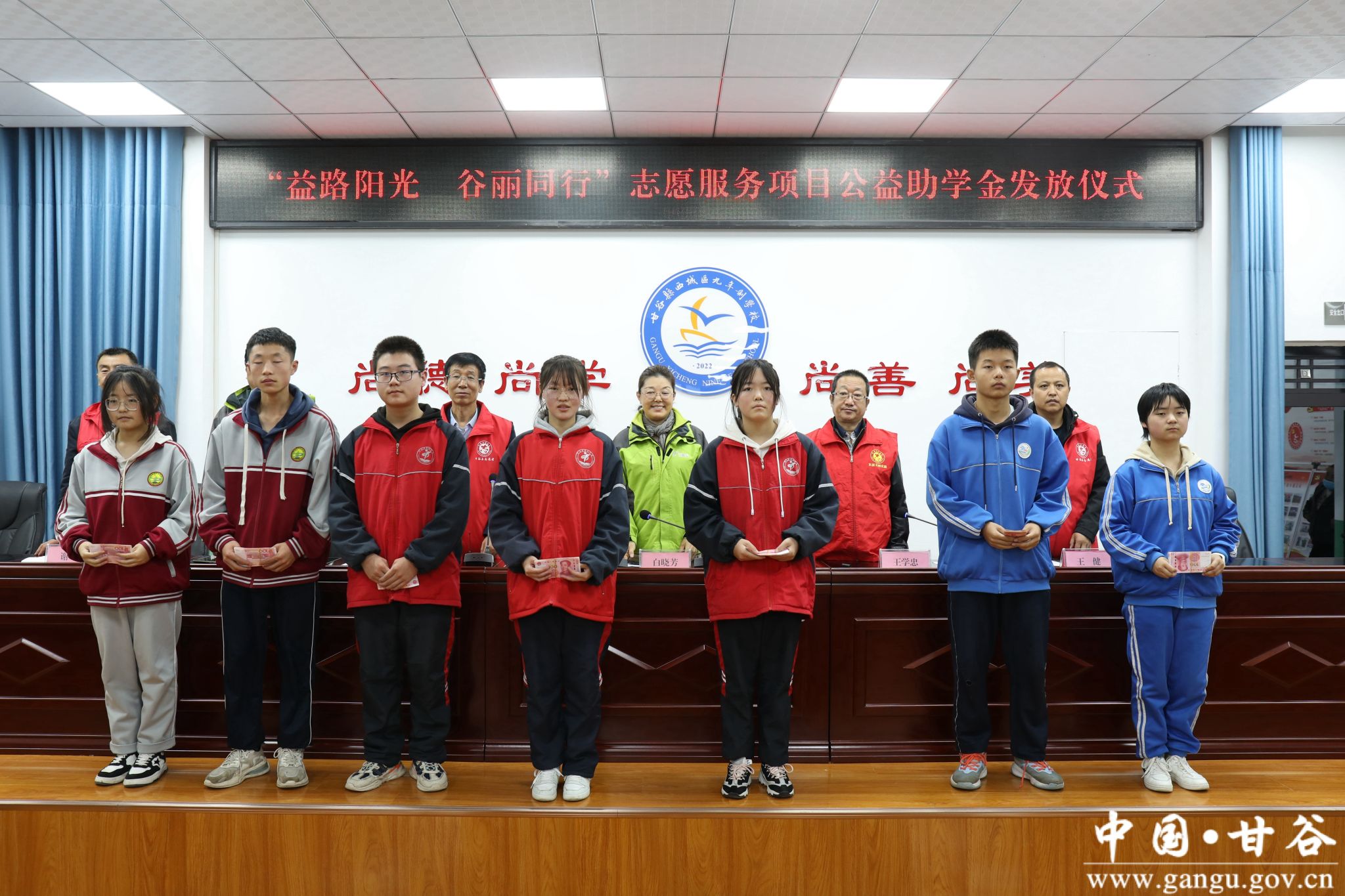 10月18日,“益路阳光 谷丽同行”志愿服务项目公益助学金甘谷县发放仪式在西城区九年制学校举行。天津益加公益社会爱心帮扶中心理事长兼秘书长白晓芳,天津益加公益社会爱心帮扶中心常务理事王学忠,天津益加公益社会爱心帮扶中心监事朱霖,县新时代文明实践中心办公室副主任王健出席发放仪式。县政府勤工俭学管理办公室主任王斌主持发放仪式。