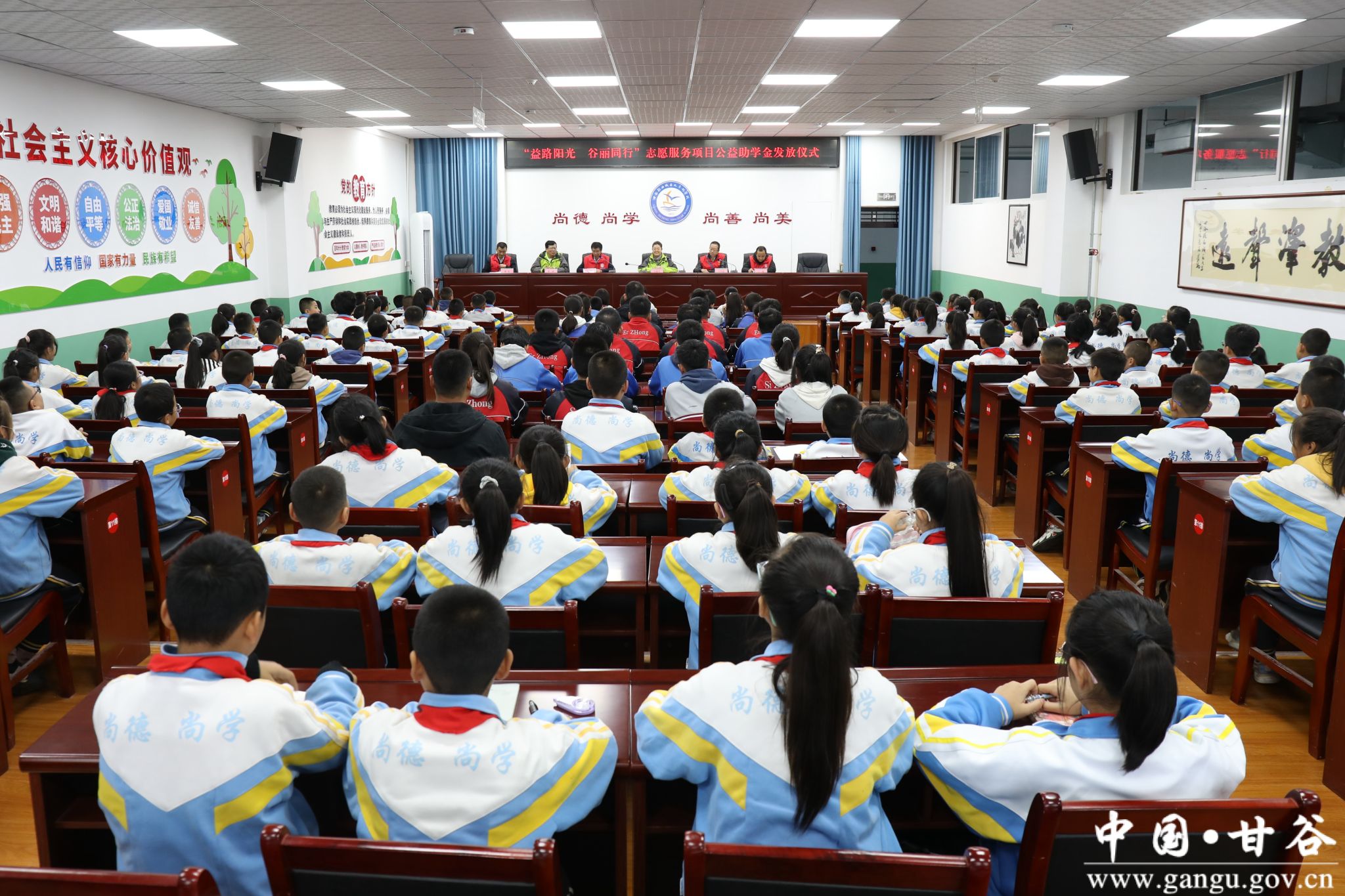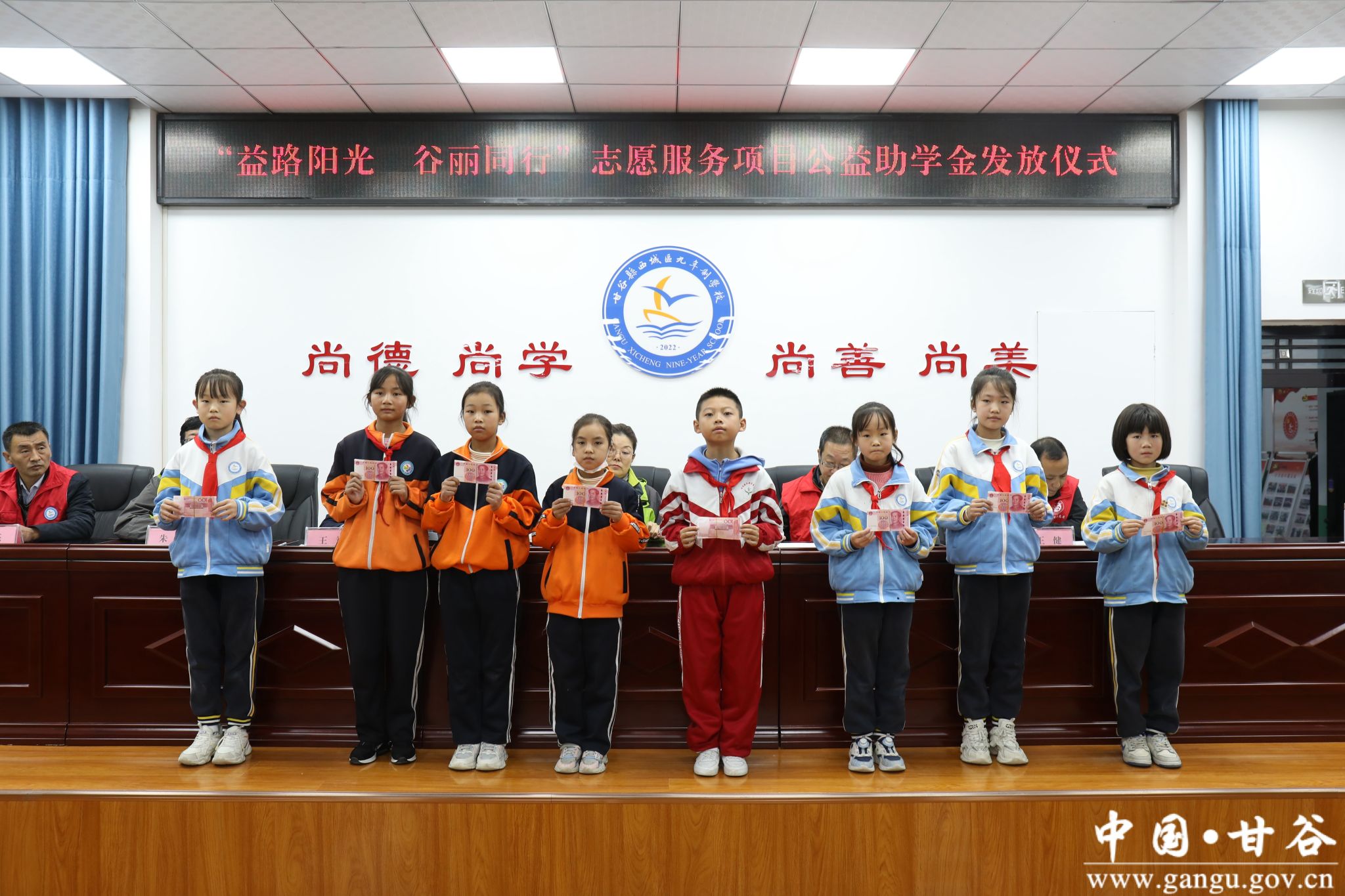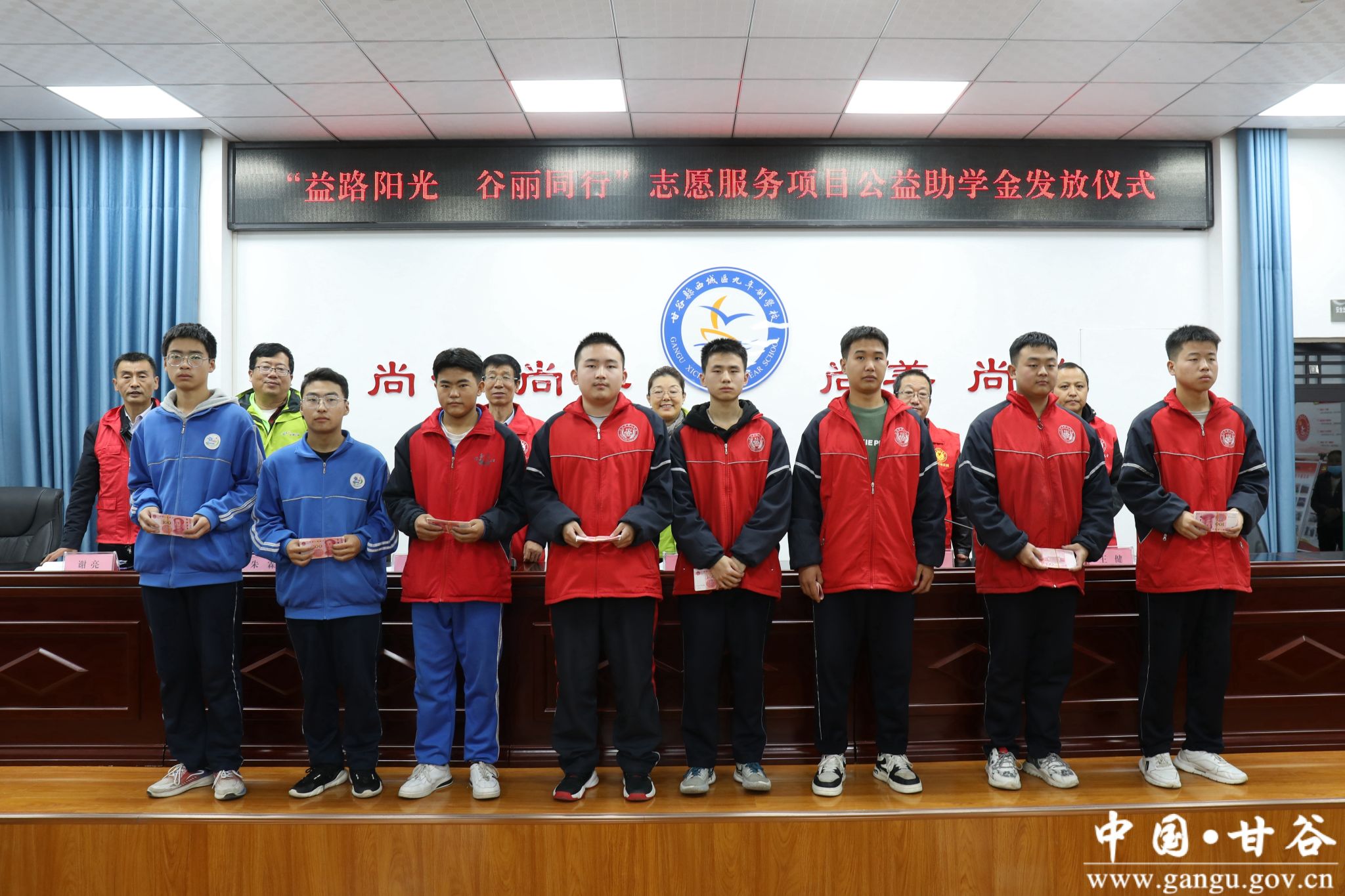 10月18日,“益路阳光 谷丽同行”志愿服务项目公益助学金甘谷县发放仪式在西城区九年制学校举行。天津益加公益社会爱心帮扶中心理事长兼秘书长白晓芳,天津益加公益社会爱心帮扶中心常务理事王学忠,天津益加公益社会爱心帮扶中心监事朱霖,县新时代文明实践中心办公室副主任王健出席发放仪式。县政府勤工俭学管理办公室主任王斌主持发放仪式。