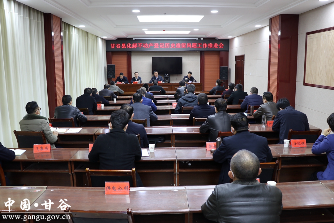 3月4日,甘谷县召开化解不动产登记历史遗留问题工作推进会,县委副书记、县长孙忠平出席会议并讲话;县委常委、副县长张恒刚主持会议;县委常委、政法委书记杜兴出席会议;县化解不动产登记历史遗留问题领导小组成员单位负责同志,第三批公告化解小区责任单位负责同志和县化解办全体工作人员参加会议。