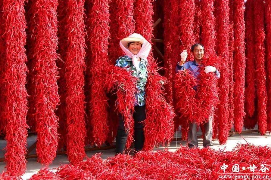 甘谷辣椒至今已有400多年的种植历史,由于独特的土壤、气候等自然条件,甘谷辣椒色泽光亮、肉厚油多、角条细长、皱褶均匀、辣味香浓,以线椒为主的60多个品种出口20多个国家和地区,成为全国辣椒生产基地之一。近年来,甘谷县把做大做强辣椒产业作为实现农民增收致富的重要举措,着力打造甘谷辣椒品牌,努力提升甘谷辣椒驰名度和影响力,全力拓宽销售市场。全县辣椒种植面积达5.6万亩,预计总产量13万吨,产值达3.5亿元左右,辣椒已成为一张独具特色的“红”色亮丽名片。