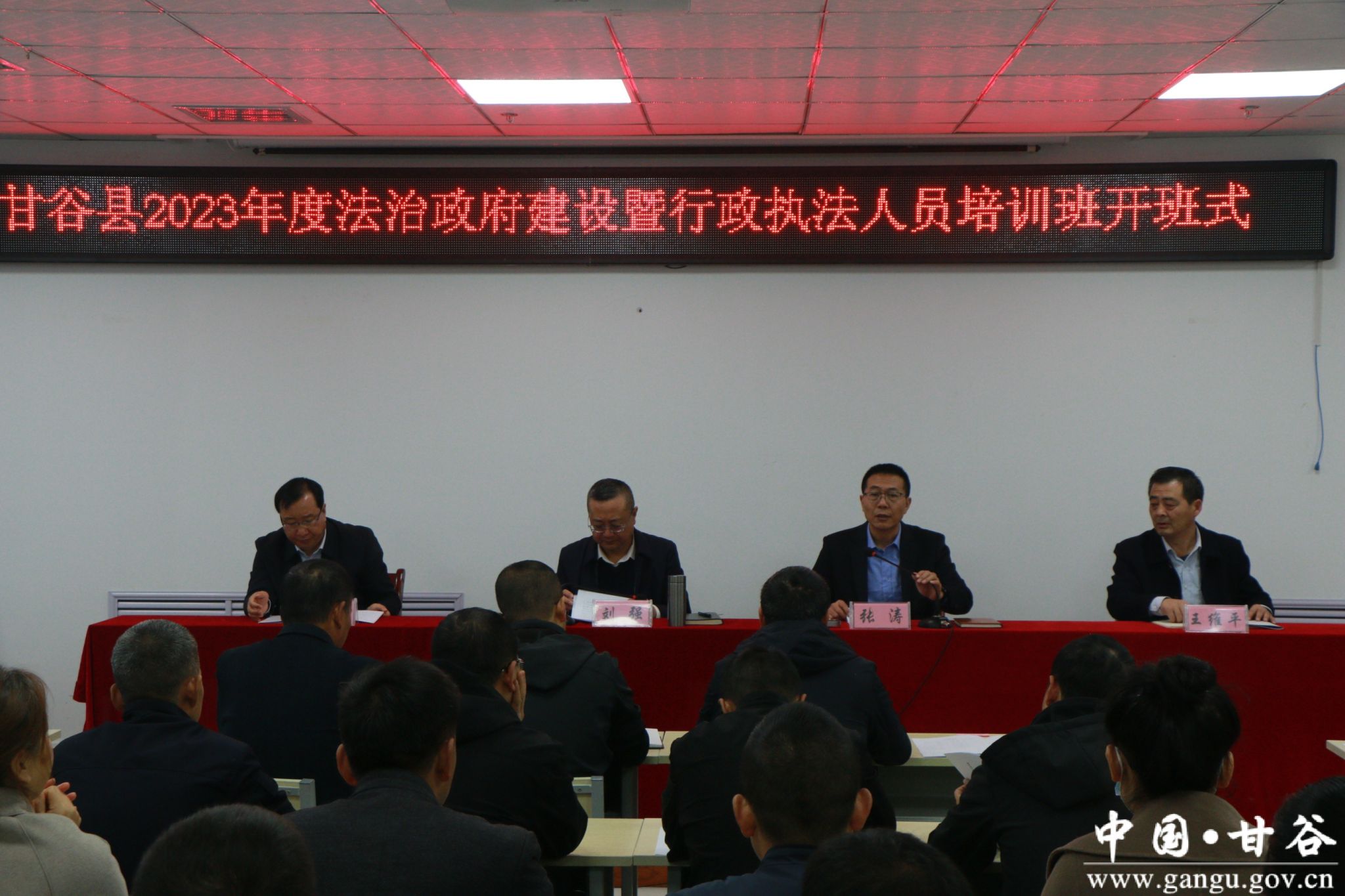 11月8日,甘谷县2023年法治政府建设暨行政执法人员培训班开班仪式在县委党校举行,县委常委、政法委书记刘强,副县长、县公安局局长张涛出席会议并讲话,各乡镇、县直各执法单位执法人员参加。