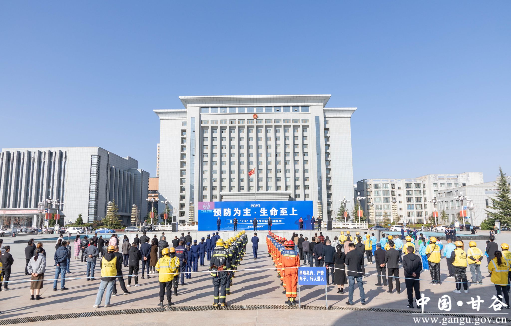 11月9日,甘谷县2023年度“119”消防宣传月活动启动仪式在冀城广场举行。县委常委、副县长李斌斌致辞并宣布甘谷县2023年“119”消防宣传月活动启动;副县长、县公安局长张涛宣读甘谷县2023年“119”消防宣传月活动实施方案;全县消防安全重点单位、小区物业人员、获奖学校师生代表、县消防救援大队消防救援人员和社会各界人士代表共计160余人参加启动仪式。