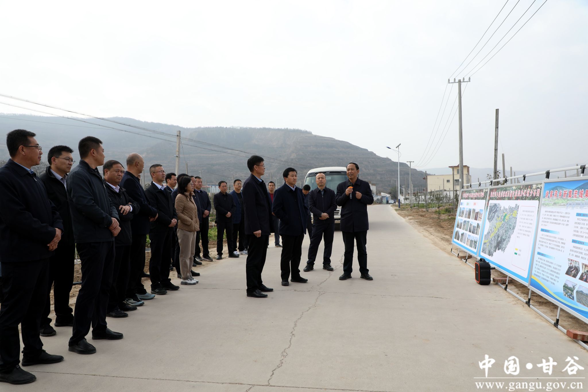 会前,与会人员现场观摩了甘谷县谢家湾乡永丰村、谢家湾乡新集流域果园改造提升和安远镇何家坪村、新兴镇蔡家寺村防灾减灾设施建设推进情况。