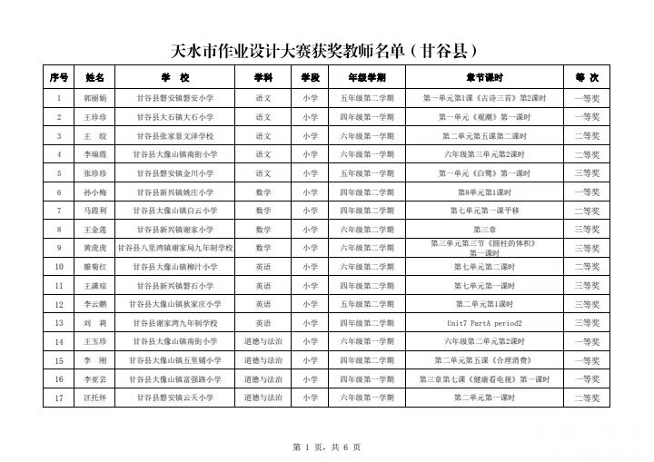 据了解,为深入落实“双减”精神,落实校本培训计划,提升教师对教材的自主研读能力和科学合理、高效的作业设计能力,切实减轻学生课业负担,甘谷县各级各类学校精心组织,指导教师积极参与,县教研室在县级决赛中择优推荐参加了天水市作业设计大赛。