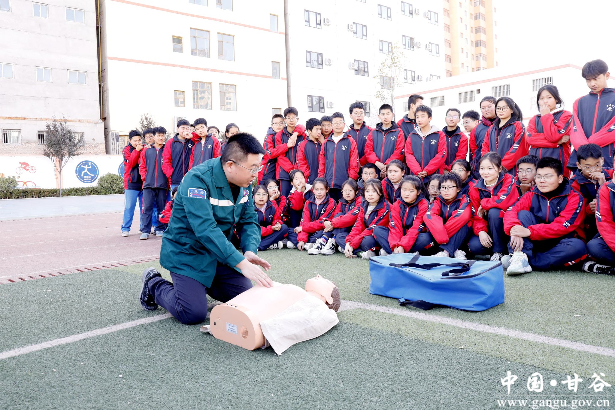 在世界急救日来临之际,为传播“人道、博爱、奉献”的红十字精神,提高学校师生对生命健康的重视和应对突发状况的能力,11月16日,甘谷县红十字会、教育局组织县医院急救科18名志愿者走进康庄中学进行应急救护知识普及培训。