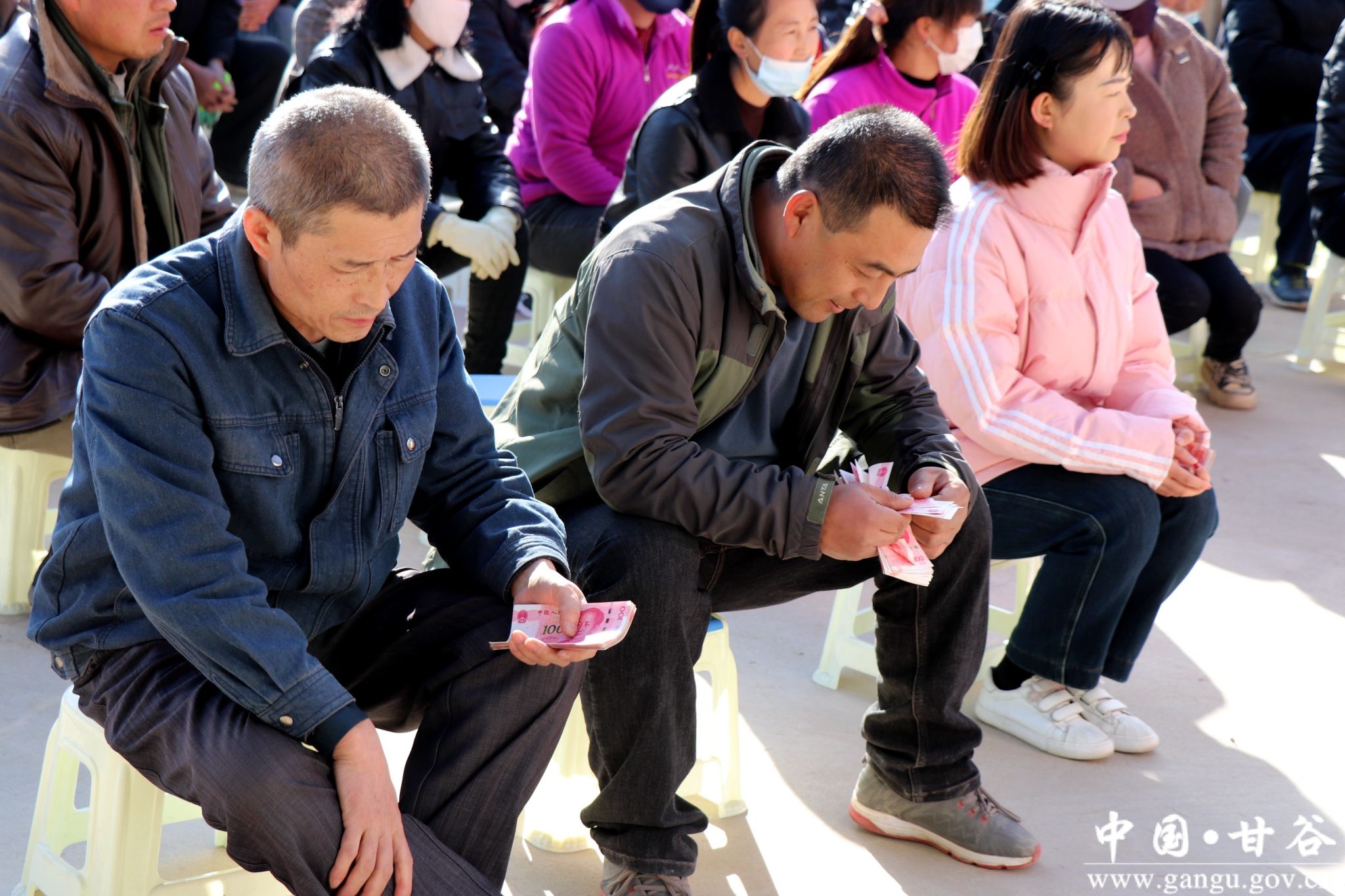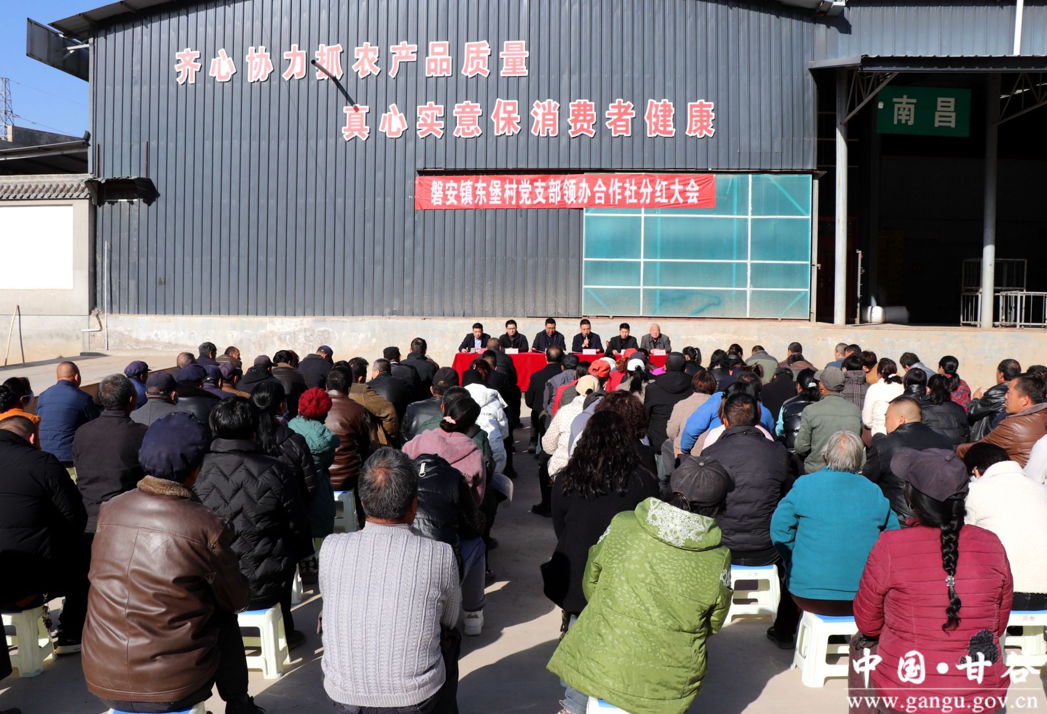 “快点走,今天下午村上集体经济分红,早点去占个位置听听村里的新政策,领票子。”11月16日,甘谷县磐安镇东堡村举行党支部领办合作社分红仪式,为全村合作社社员发放集体经济分红。吃完中午饭,东堡村村民杨再生就叫上老婆王秀琴一起赶到了三和祥果蔬农民专业合作社,早早地占了位置,等着分红仪式的举行。