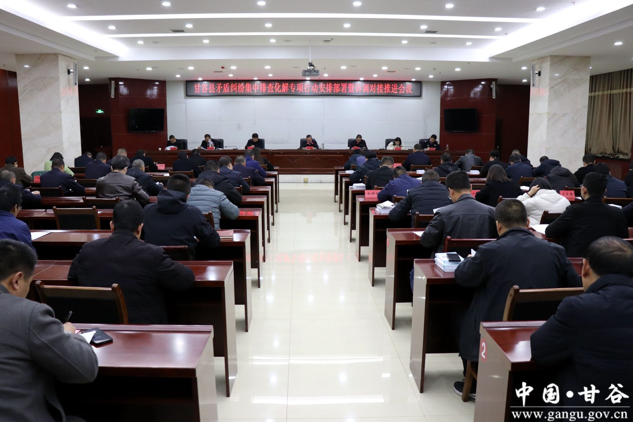 11月17日,甘谷县召开矛盾纠纷集中排查化解专项行动安排部署会议暨诉调对接工作会议,认真贯彻落实中央和省市工作要求以及各级领导讲话批示精神,动员部署全县矛盾纠纷集中排查化解专项行动,对综治中心规范化建设实体化运行、诉调对接、警调对接等政法重点工作进行再安排再推动。