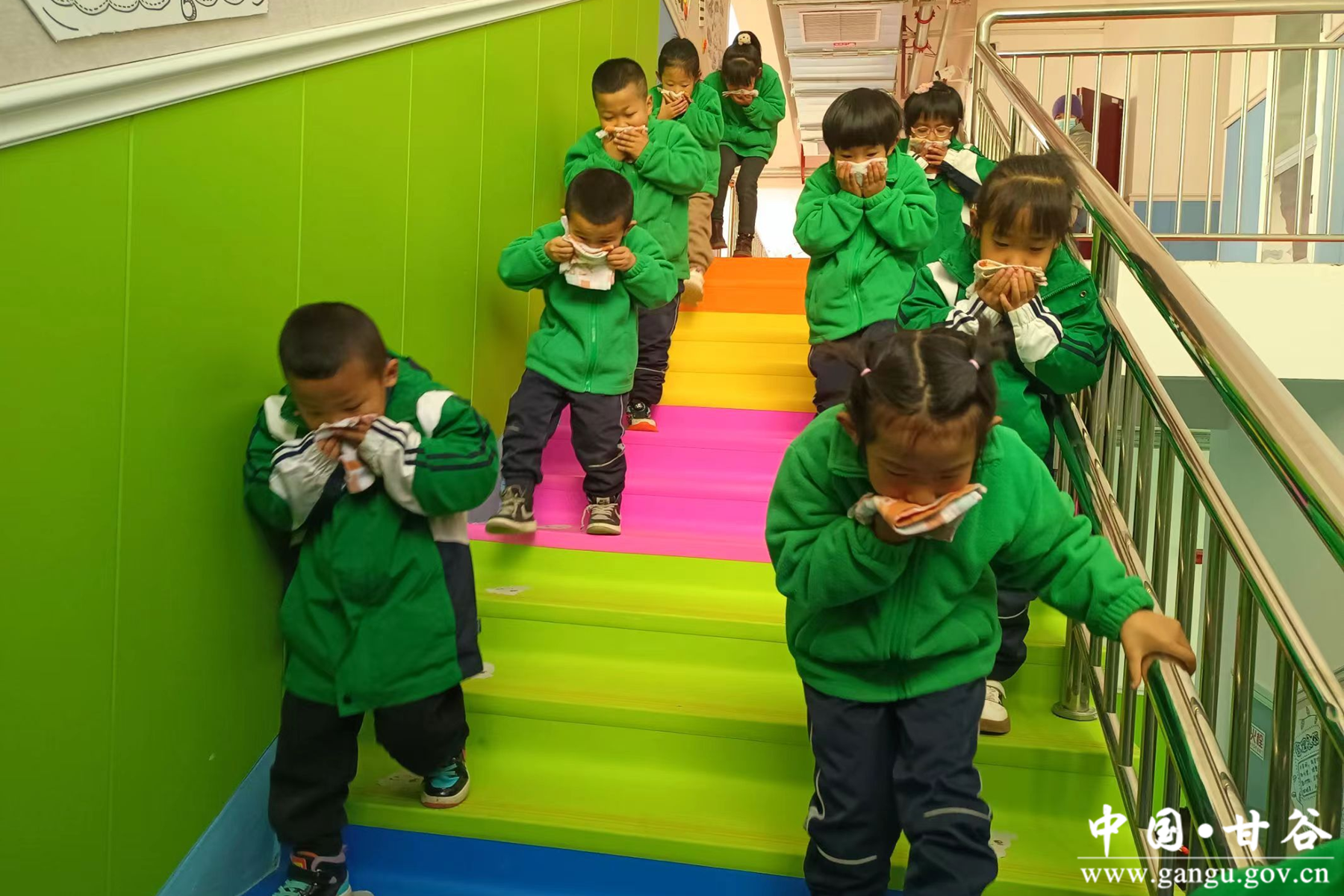 课后,大队消防宣传员还组织了孩子们和老师开展了疏散逃生演练,模拟幼儿园突发火灾,大量浓烟向教室蔓延,听到紧急通知后,各班小朋友在老师的组织下排好队,躬身低头。用湿毛巾或手捂住口鼻,迅速向室外空旷操场跑去。3分多钟,全体师生紧张而有序地撤离到了安全地带。