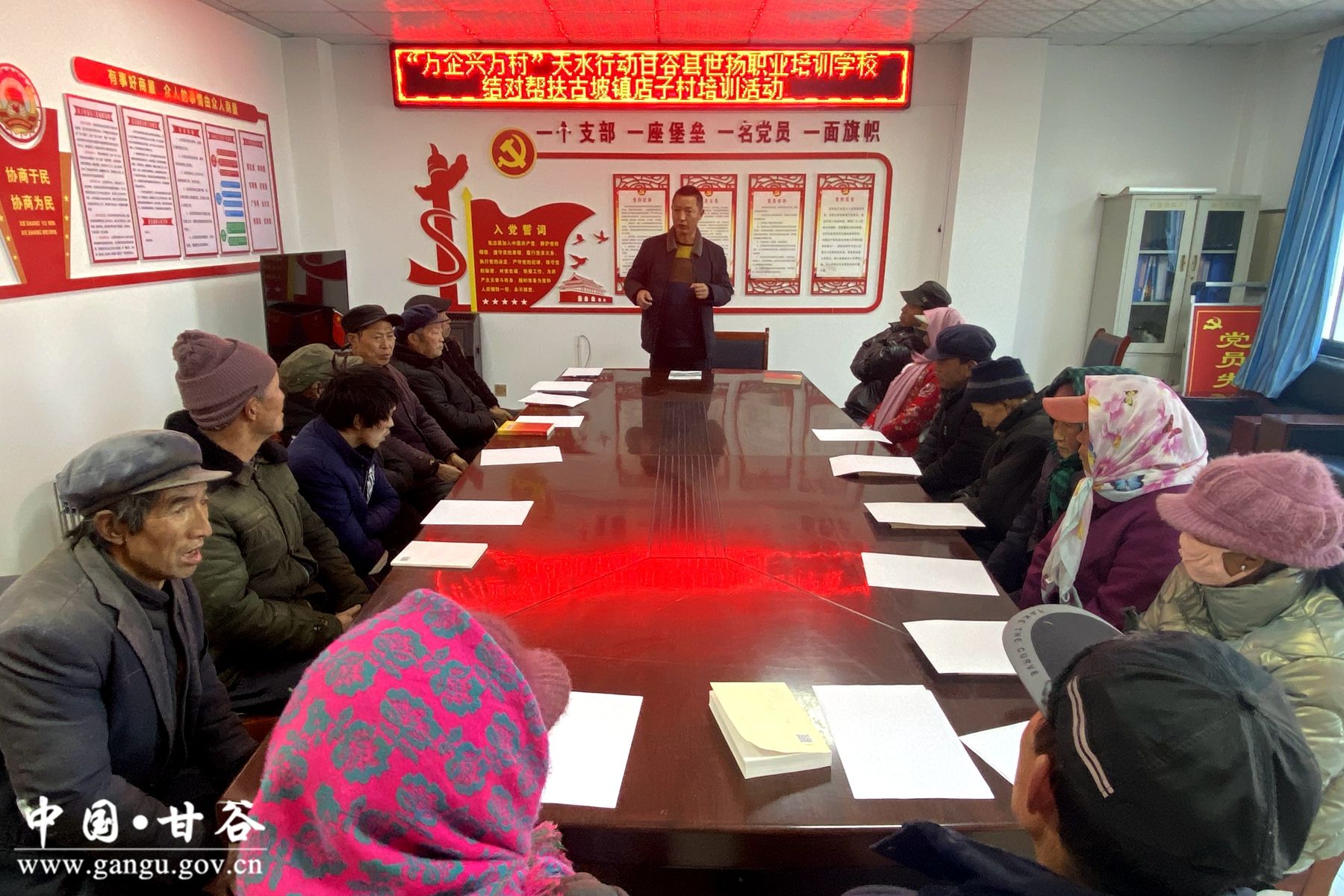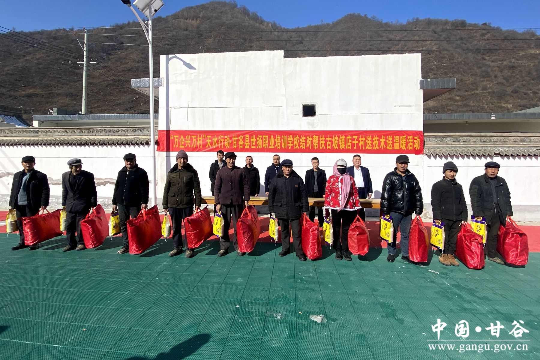 新甘谷讯【记者 何乐】12月19日,甘谷县世扬职业培训学校到结对帮扶点古坡镇下店子村开展“万企兴万村,送技术送温暖”活动,给帮扶群众送去了实用农业技术以及大米、棉被等物资,切实发挥企业优势为民办实事,助力服务乡村振兴。甘谷县工商联、古坡镇相关人员以及帮扶村群众50余人参加活动。