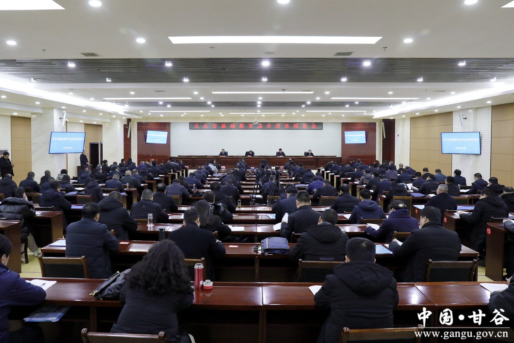 新甘谷讯【记者 颉凤 谢贝贝 王瑷萍 王永吉 王纯伟】12月19日,全市基础教育综合改革推进会在甘谷县召开。市委教育工委书记、市教育局党组书记杨瑞峰出席会议并讲话;县委副书记、县长孙忠平致辞;市教育局党组成员、副局长李长虹主持会议;副县长霍艳平出席会议;各县区教育局负责人,市教育局机关相关科室、各县区教育股、教研室负责人以及全市部分中小学校长代表共计150余人参加会议。