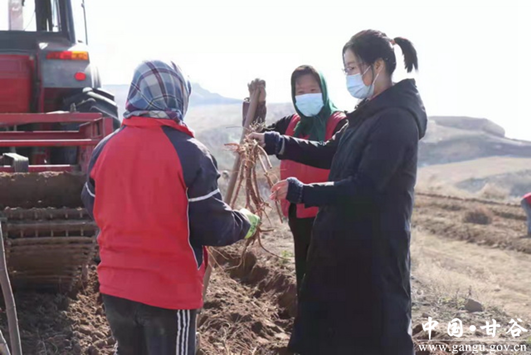 为进一步巩固脱贫攻坚成果,增加农村留守妇女、老人劳务收入,积极推动甘谷白条党参、款冬花道地药材、甘谷辣椒等试验示范基地建设,并长期驻扎一线悉心指导农村妇女学习种植技术、总结推广经验。在半干旱山区成功试验示范地膜黄芩种植,成功探索出高产高效栽培模式,增加了甘谷县中药材种植种类,建成药用植物试验圃3个,成为农村妇女的技术实践点和练兵场。2020年在中药材优势产区建成2050亩的党参、药用菊、黄芪等中药材标准化示范点,2021年在中药材生产重点区域建成7158亩的中药材标准化生产基地,涉及30个村,其中1000亩示范基地2处,并积极吸纳留守妇女老人就业,增加家庭收入。