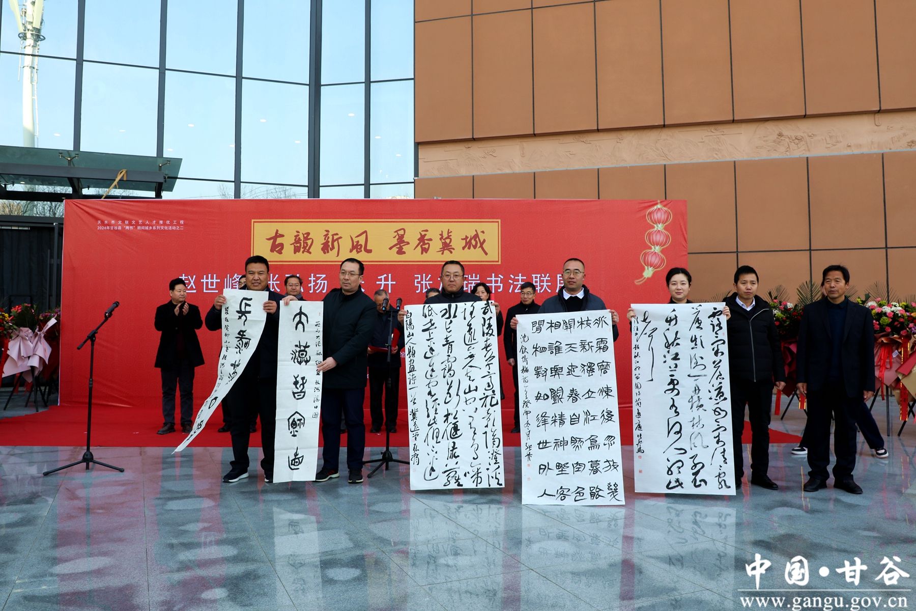 新甘谷讯【记者 张宾】1月5日,甘谷县“古韵新风 墨香冀城”赵世峰、张弘扬、张升、张旭瑞书法联展开展仪式在县博物馆举行。甘肃省书法家协会副主席、天水市文联一级调研员、天水市书法家协会主席杨清汀宣布书法联展开展。县委常委、宣传部部长范慧致辞。县人大常委会副主任杨晓涛主持开展仪式。参展作者代表张弘扬致答谢词。赵世峰、张弘扬、张升、张旭瑞向甘谷县博物馆捐赠书法作品。