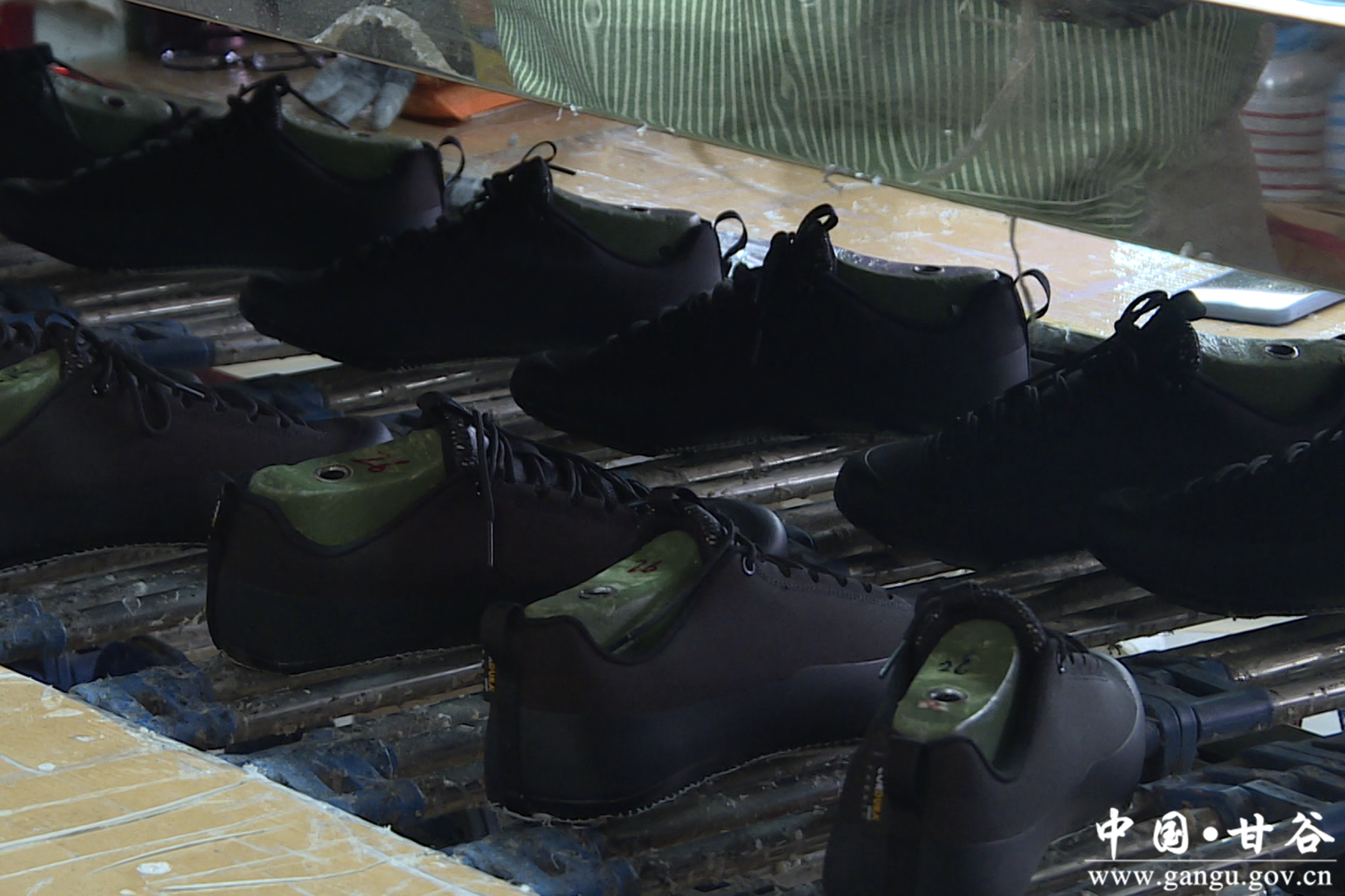 在甘肃陇山驰体育用品有限公司生产车间内,生产鞋子所需的各种原材料有序摆放,鞋模裁断、帮面车缝、鞋子合成、入库对账,各个环节配合默契、有条不紊,一派奋力冲刺的繁忙景象。