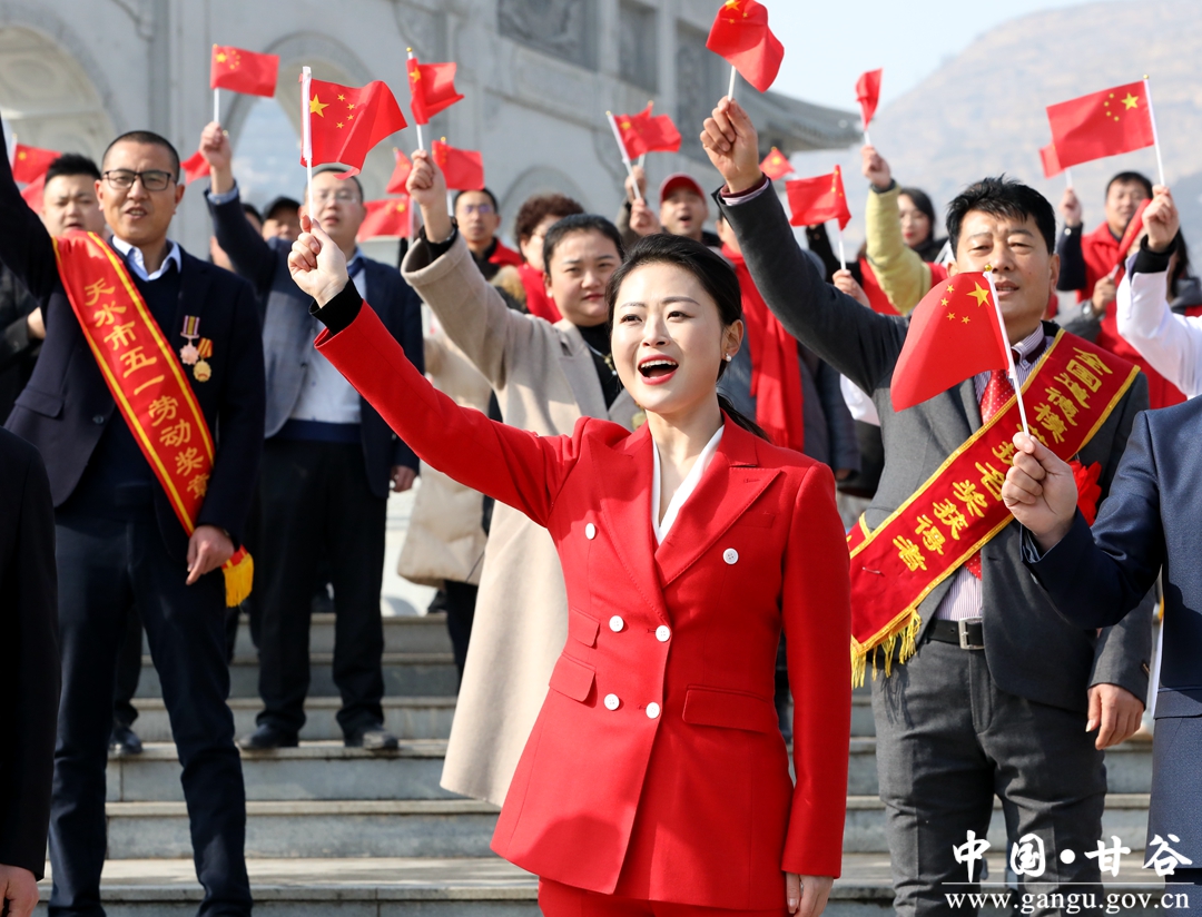 在甘谷县大像山公园、大像山AAAA级景区、连霍高速甘谷出口、南滨河路社会主义核心价值观主题公园等地,100多名传唱者分散开来,随着恢宏激昂的旋律一起发声。饱含深情和热忱的歌声,回荡在甘谷大地,将一幕幕波澜壮阔的画面呈现在人们眼前,让现场所有人都感受到了蓬勃向上、与时俱进的中国力量和敢为人先、不畏艰险的中国精神,树立起了坚定地追逐幸福美好生活、实现中华民族伟大复兴的时代信心和决心。