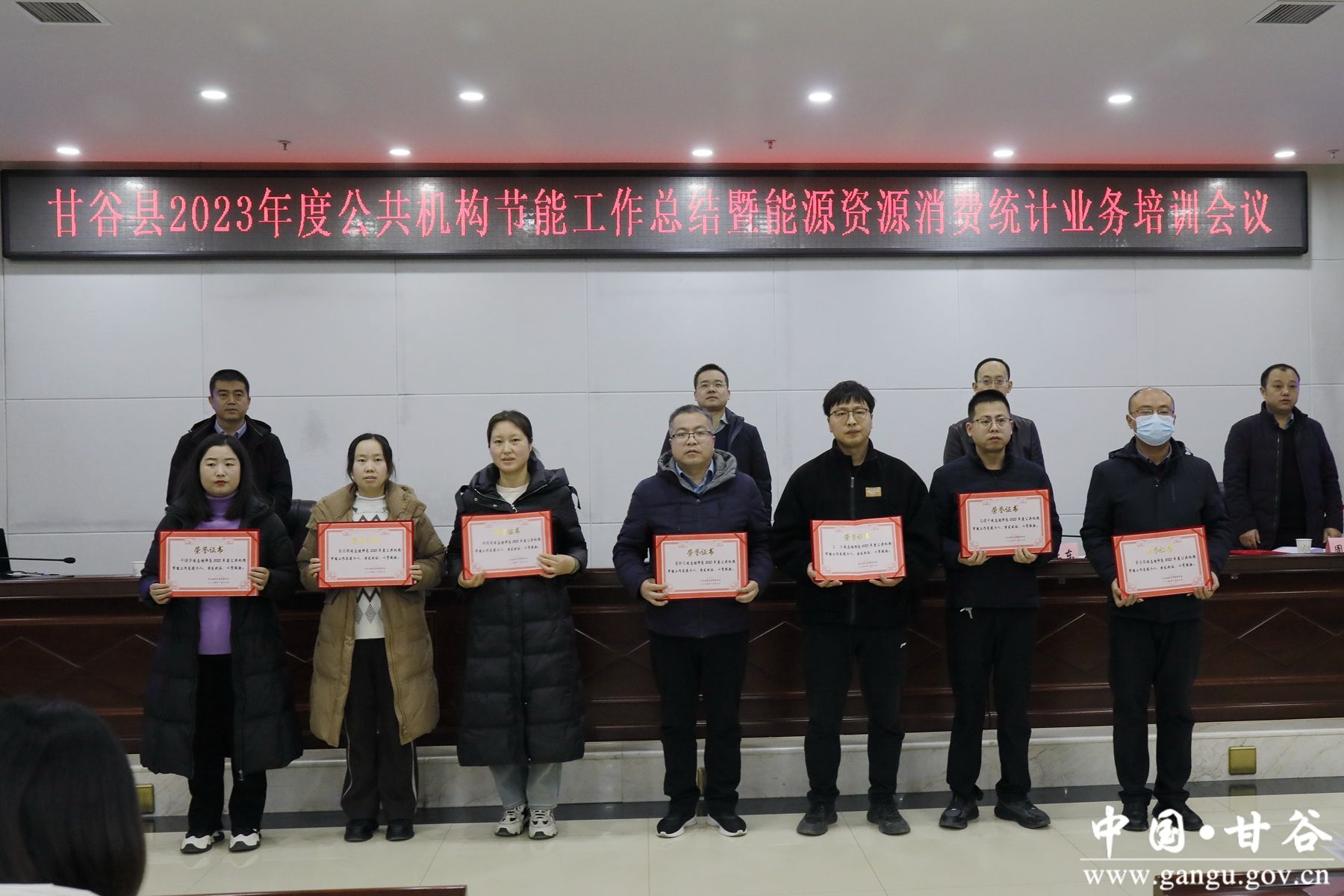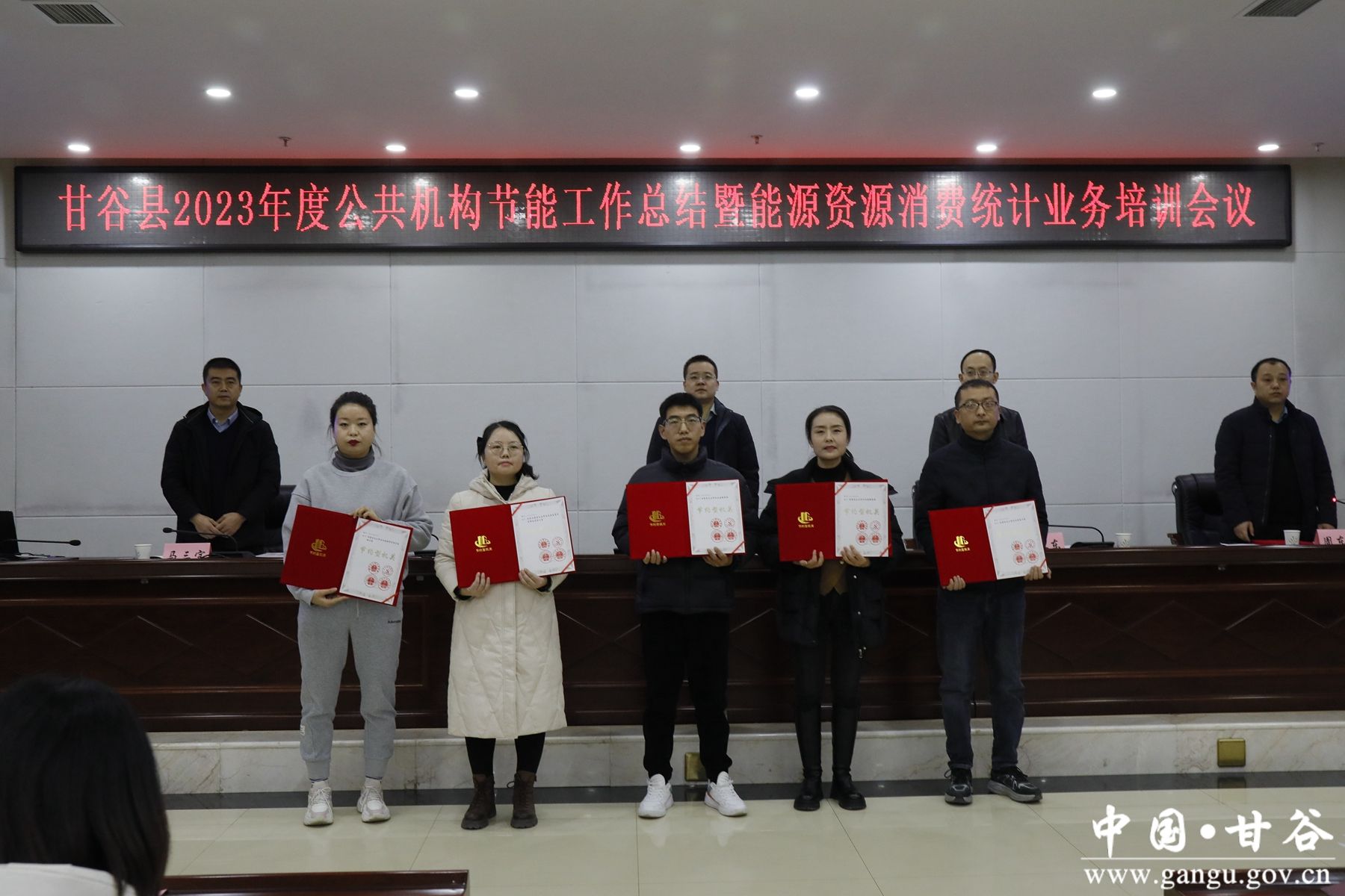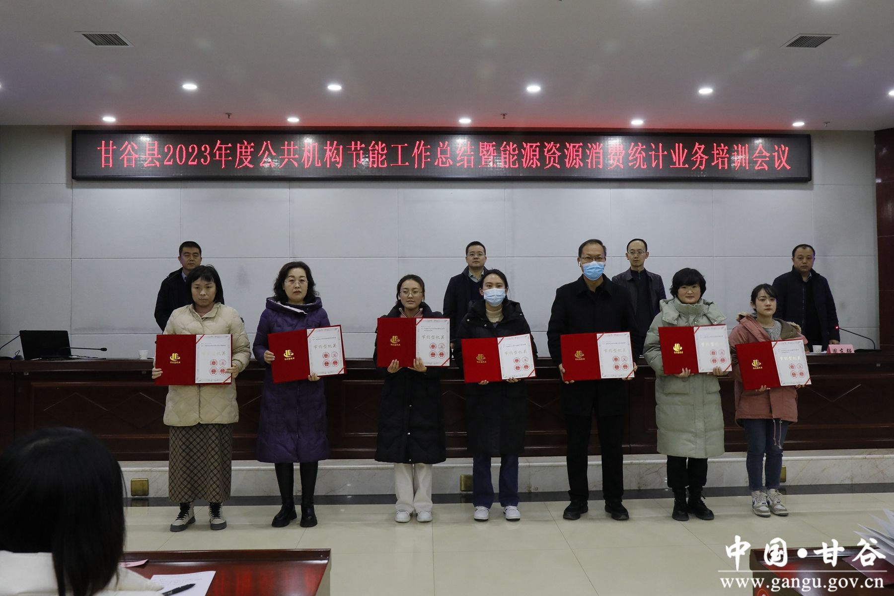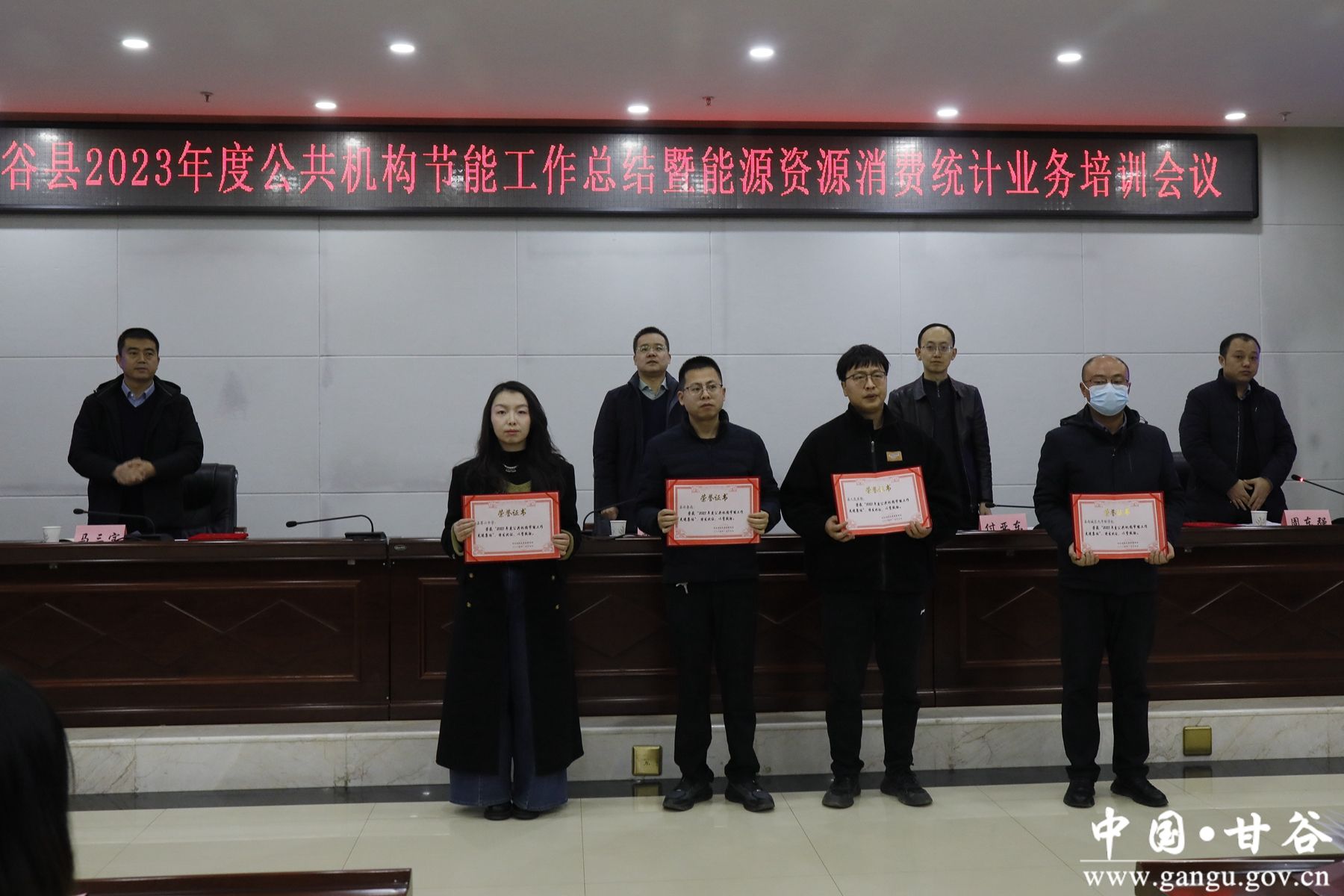 会议宣读了《关于第三批节约型机关创建结果的通报》和《甘谷县机关事务管理局关于表彰2023年度甘谷县公共机构节能工作先进集体和先进个人的通报》,并为2023年全县公共机构节能工作先进集体和先进个人颁发了荣誉证书。