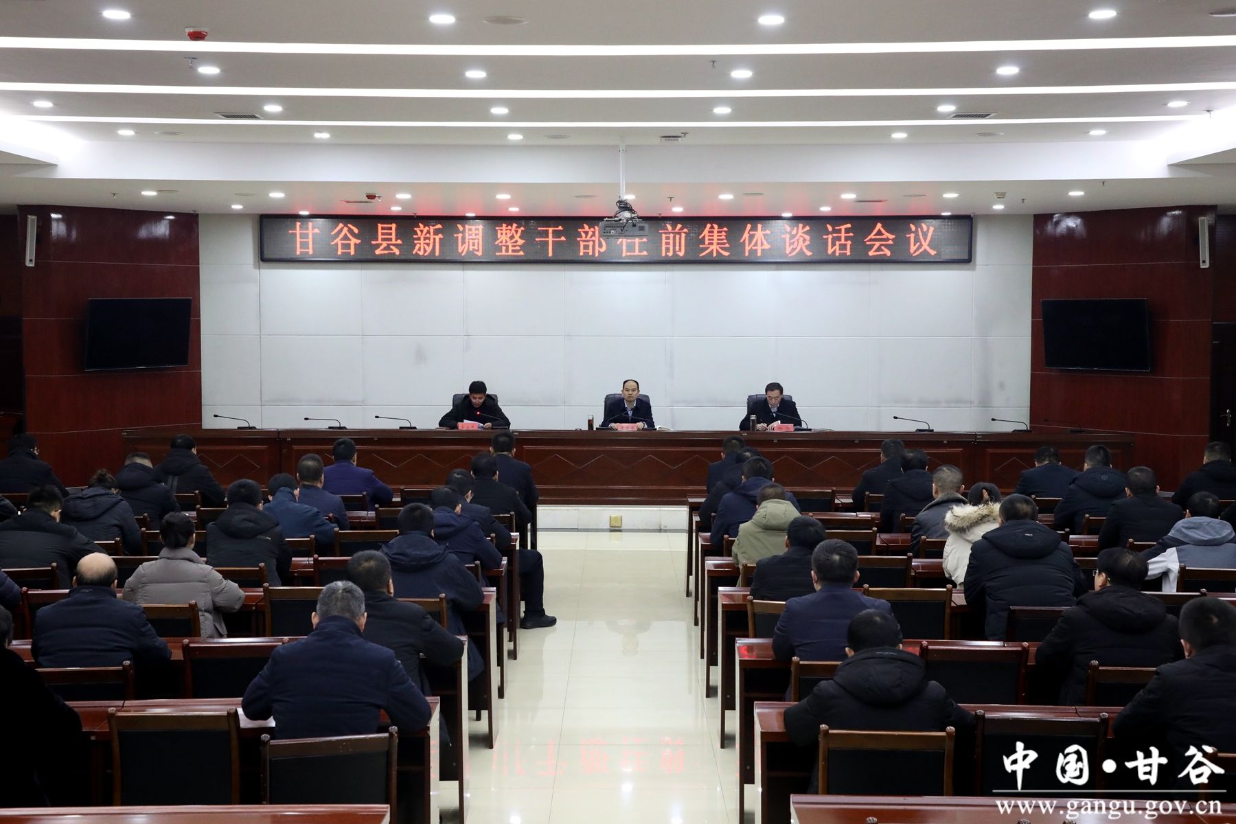 新甘谷讯【记者 张宾】1月26日,甘谷县召开新调整干部任前集体谈话会议,宣读县委有关任免决定。县委常委、县纪委书记、县监委主任李万举出席会议并对新调整干部作廉政谈话。县委常委、组织部部长杜兴主持会议。