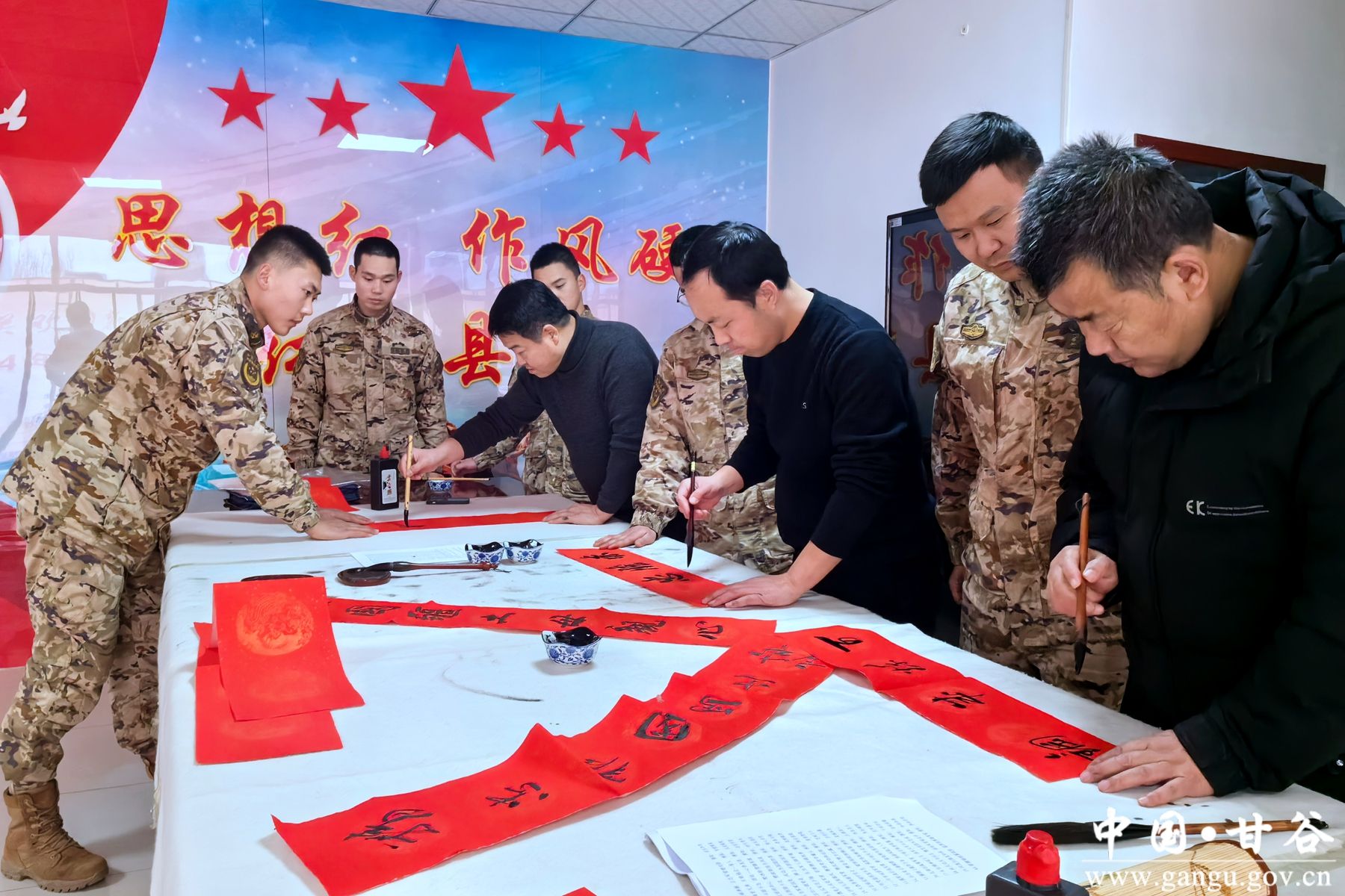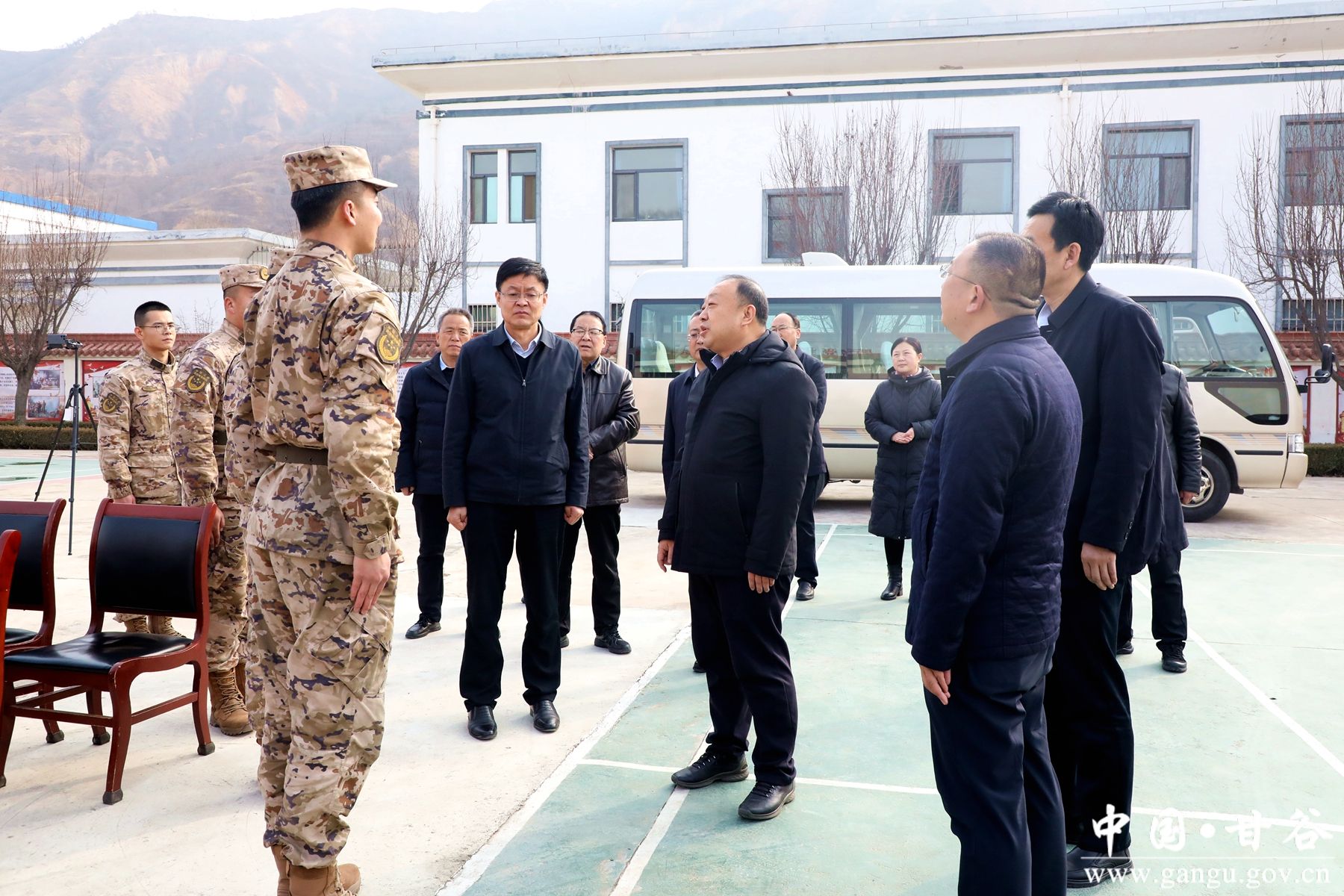 新甘谷讯【记者 张宾】军民一家亲、共叙鱼水情,在新春佳节来临之际,2月1日,县委书记吴健,县委副书记、县长孙忠平,县政协主席令军强来到县消防救援大队、县人武部和武警中队开展走访慰问,代表县四大组织和全县人民向广大官兵致以诚挚问候和新春祝福,共促军民团结,共话双拥共建。县领导李斌斌、刘强、王新民、郭有生一同慰问。