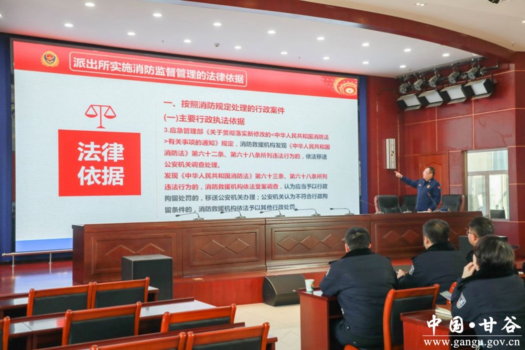 新甘谷讯【通讯员 王俊】为进一步推进公安派出所消防监督管理有效开展,着力提升基层公安民警消防监督检查水平,助力消防除患攻坚行动消防安全专项整治工作,近日,甘谷县消防救援大队联合县公安局组织开展“消防除患攻坚行动”公安派出所业务大培训,全县17个公安派出所负责日常消防工作的专兼职民警参加了培训。