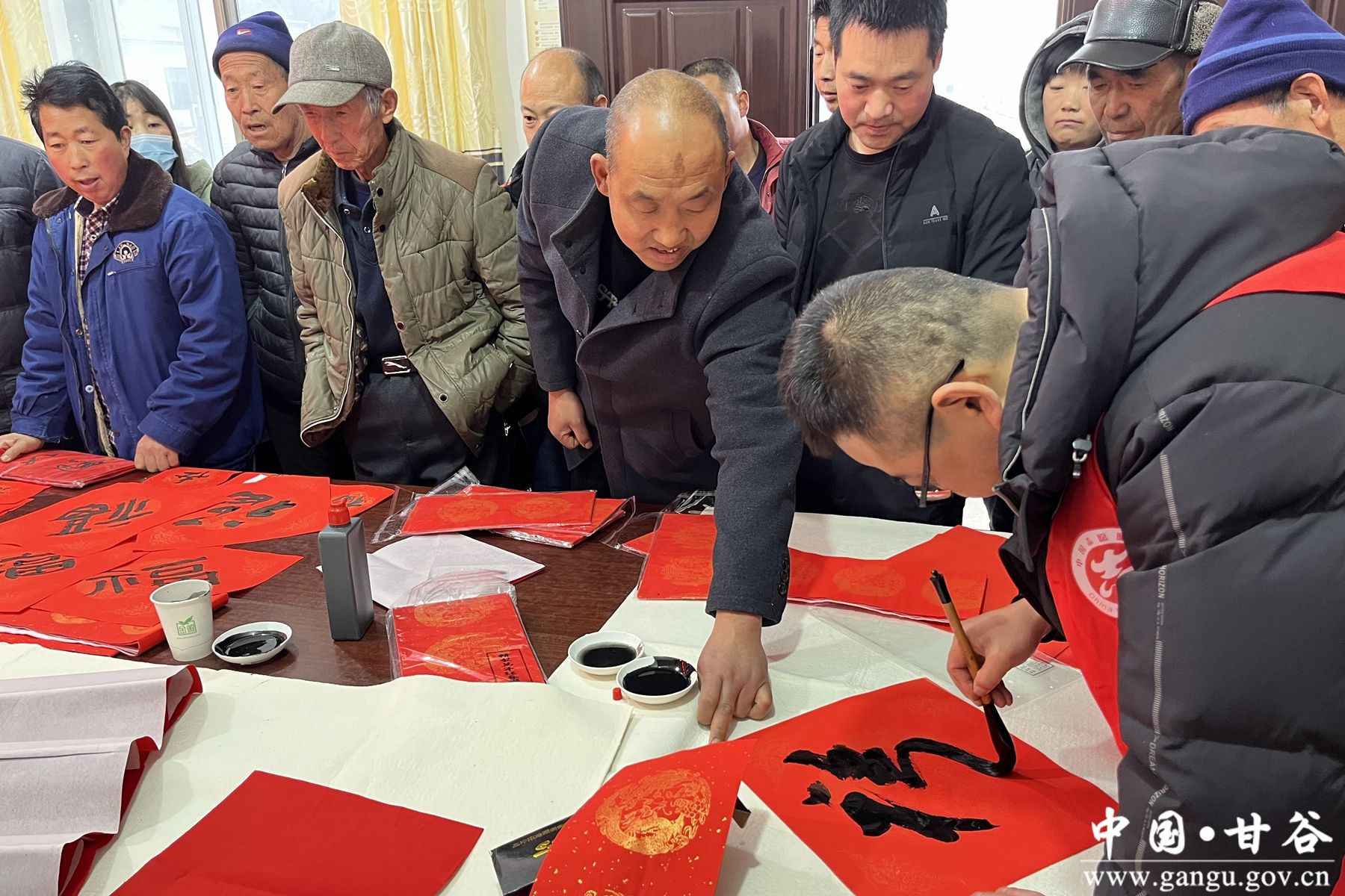 虽然天气严寒,但志愿者们热情似火。书法家志愿者现场挥毫泼墨、笔走龙蛇,围观的群众凝神专注、连连称赞,一幅幅祝福的春联和一张张形态各异的福字映衬着浓浓的年味,群众洋溢着幸福的笑容,纷纷表示书法家现场书写赠送的春联比买来的更有意义,更能体现政府对群众的关怀。