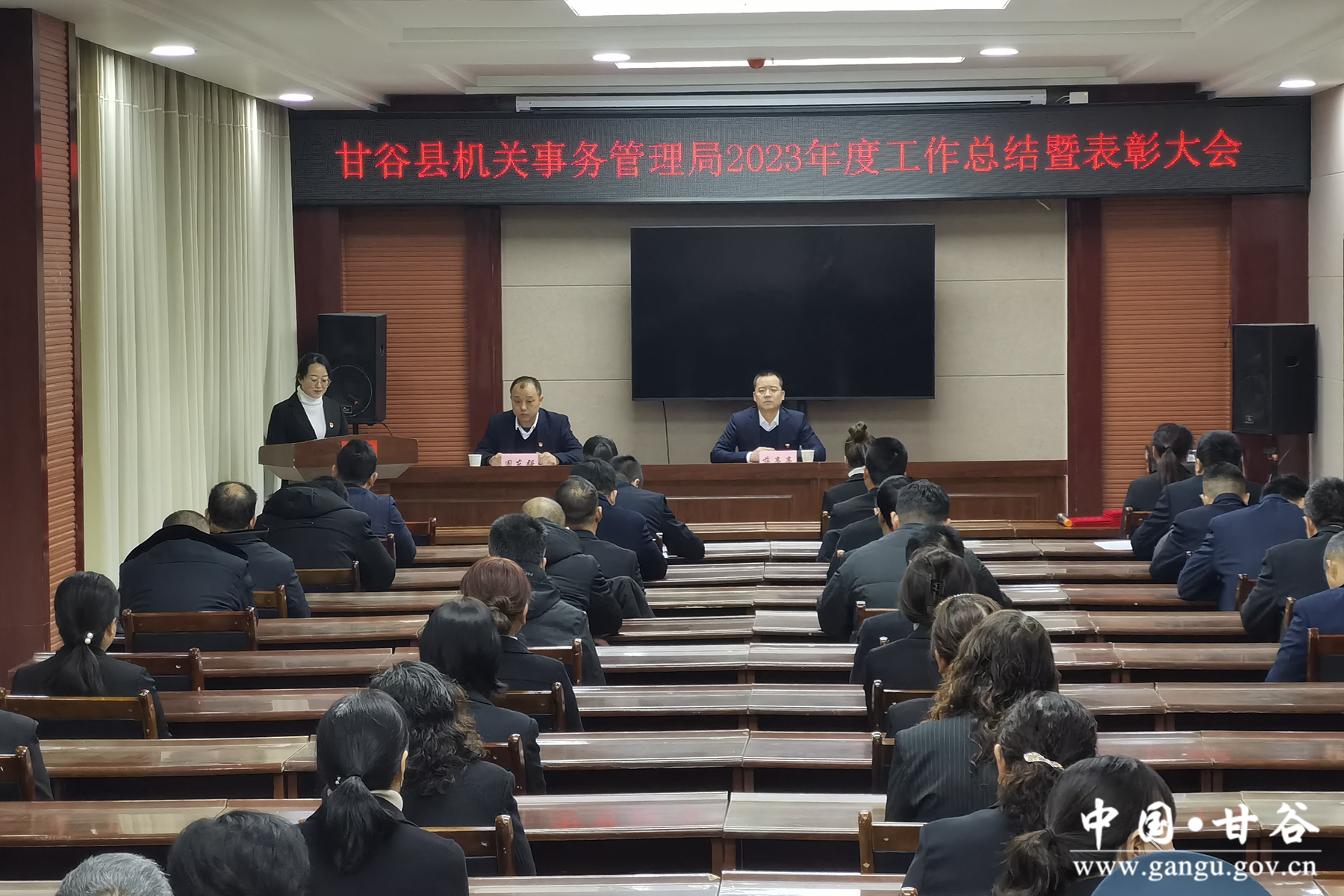 新甘谷讯【通讯员 蔺蕊娜】2月3日,甘谷县机关事务管理局召开2023年度工作总结暨表彰大会,全面总结2023年度各项工作,安排部署2024年重点工作,表彰奖励先进集体和先进个人。局领导班子、机关全体干部职工共计60余人参加会议。