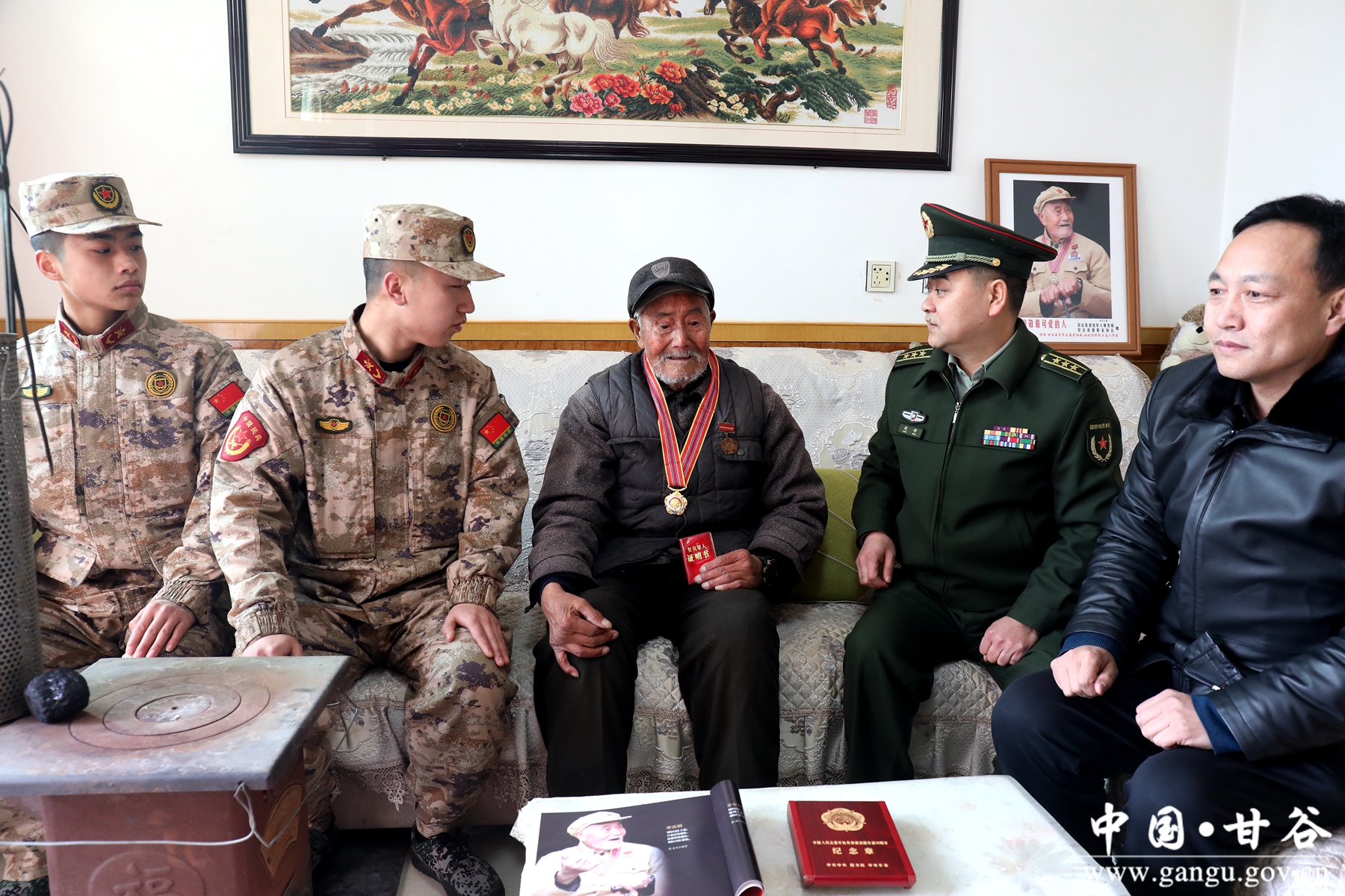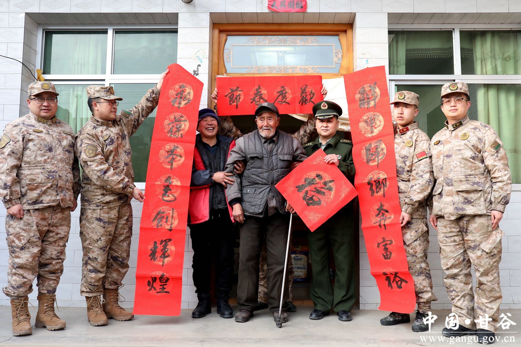 新甘谷讯【记者 谢映波】2月4日,县人武部部长赵峰、政委杨磊带领甘谷县人武部干部、县退役军人事务局相关领导及民兵干部代表对辖区老战士开展春节慰问,向他们致以新春佳节的问候和美好祝福,与他们亲切握手、详细交谈,询问身体状况、生活情况,倾听英雄事迹,追忆峥嵘岁月,面对面受教育,心贴心送祝福。