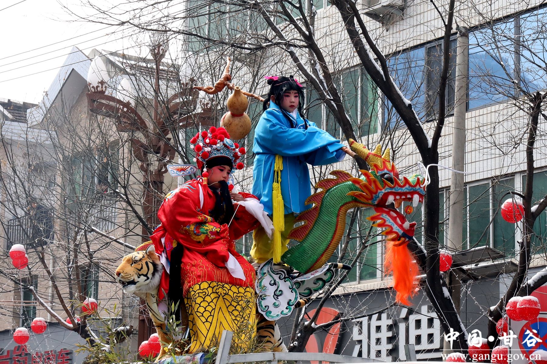 “看社火,扭秧歌,热热闹闹庆新春,红红火火过大年,大美甘谷的年味又回来了。”“虽然下着雪,但看社火的心情依旧是心潮澎湃的。”“哎呀,人得得很,热闹得很,今年的社火很好。”“今年县上组织得得力,镇村都准备得比较充分,我们村的锣鼓队都练了好几天了,为大家奉献一个快乐祥和、欢乐的年。”市民们看着精彩的社火表演,你一句我一句表达着内心的喜悦。