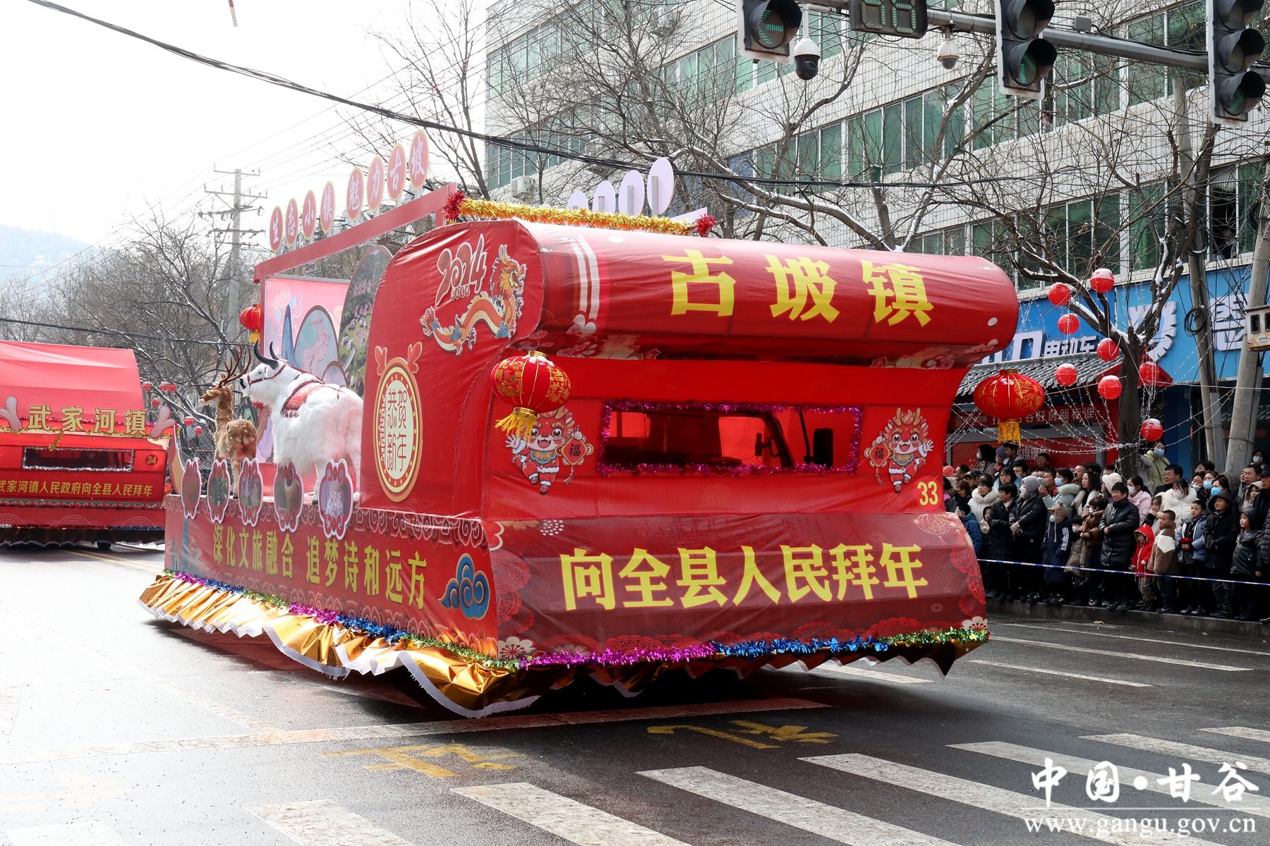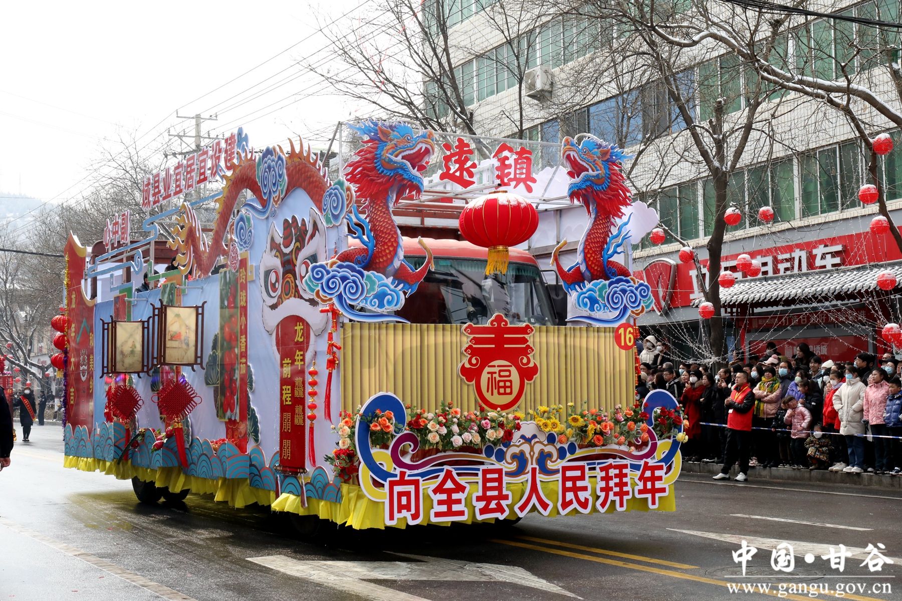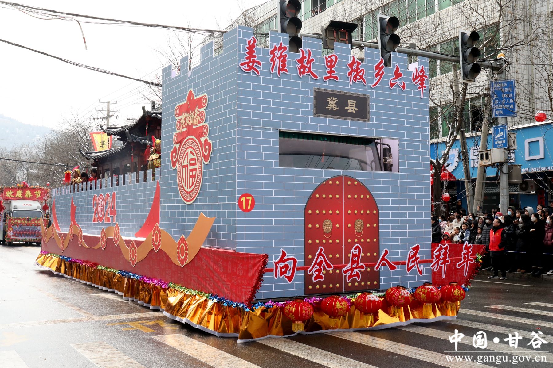 “2024年甘谷县春节群众文化汇演活动分龙腾盛世、非遗闹春、小康甘谷三大板块,由56辆彩车34个方阵组成,其中56辆彩车象征56个民族红心向党,踏步新征程、奋进新时代;34个方阵组成象征34个行政区域团结一心,砥砺奋进,向着中华民族伟大复兴的伟大征程携手前行,整体活动参演人员12000余人,现场观众20万左右。”县文旅局局长王存录介绍。