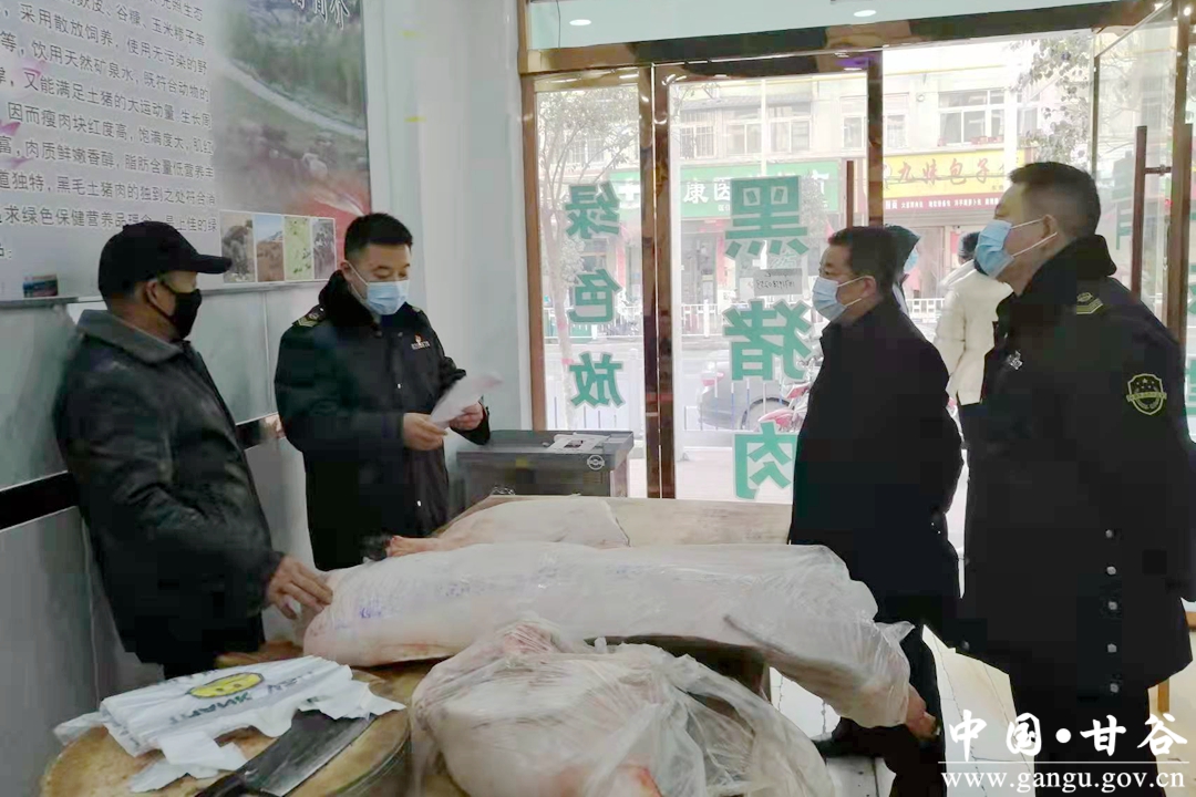 春节临近,冷鲜猪肉需求量增大,为切实保障猪肉产品质量安全,在抓好消费安全的同时,进一步强化疫情防控责任落实,确保广大群众吃上放心猪肉。连日来,甘谷县市场监督管理局执法人员对猪肉经营门店及大中型超市冷鲜肉经营及疫情防控主体责任落实进行突击检查。