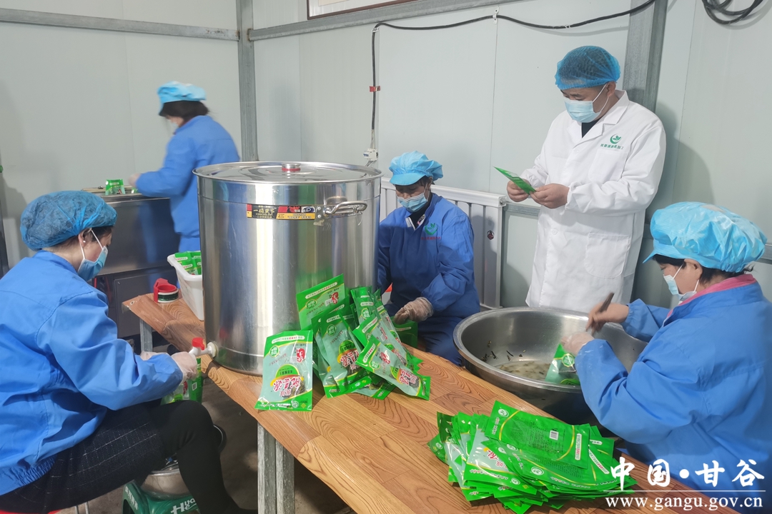 甘谷县陇姜源蔬菜加工公司组织村民种植精品蔬菜、走出了一条集蔬菜种植、加工生产、包装销售一体化的致富新路,其中酸菜产品畅销海内外,为村里30余名村民提供了就业岗位。目前,酸菜系列产品借助电商平台,销量和声誉渐高,获得了外地客商的认可支持。