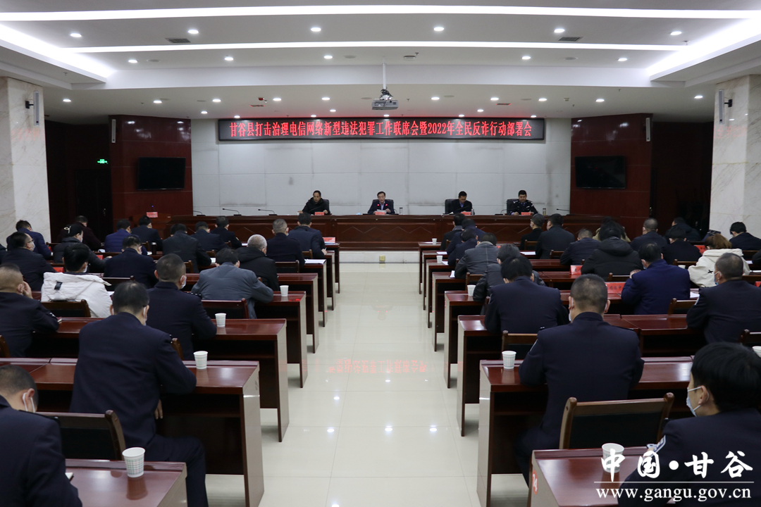 1月19日,甘谷县召开打击治理电信网络新型违法犯罪工作联席会议暨2022年全民反诈行动部署会议,县委常委、政法委书记杜兴,副县长、县公安局局长张涛出席会议并讲话;县打击治理电信网络新型违法犯罪工作联席会议各成员单位、各乡镇主要负责人参加会议。