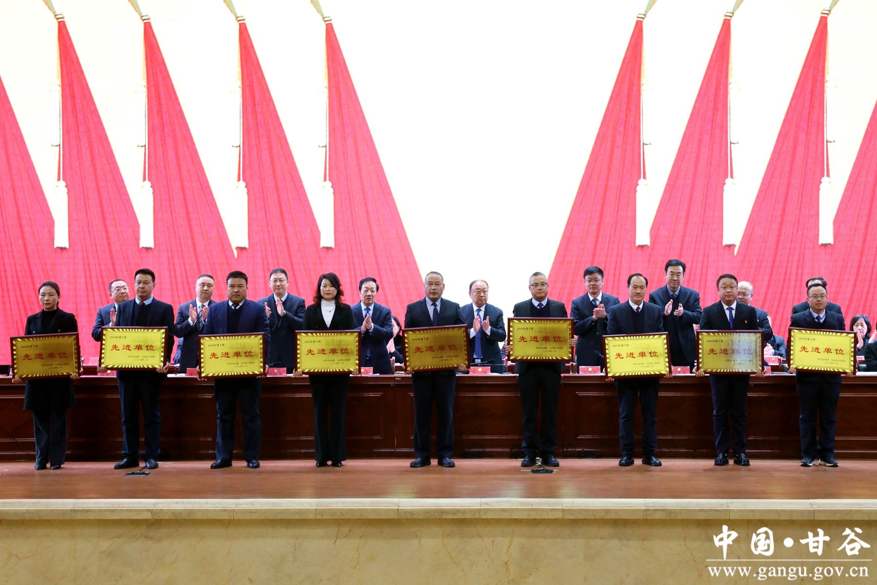 新甘谷讯【记者 张宾】2月29日下午,甘谷县召开全县工作会议,全面贯彻落实中央和省、市一系列工作会议精神,回顾总结2023年成绩,表彰奖励先进乡镇和单位,安排部署2024年重点任务,激励动员全县上下聚焦经济建设这一中心工作和高质量发展这一首要任务,坚定信心、攻坚克难、躬身实干,开足马力抢先机、争先进位开新局,全力确保高质量完成全年各项目标任务。