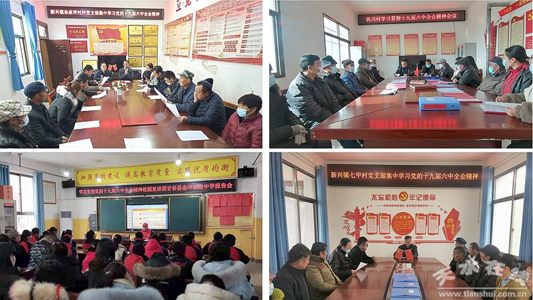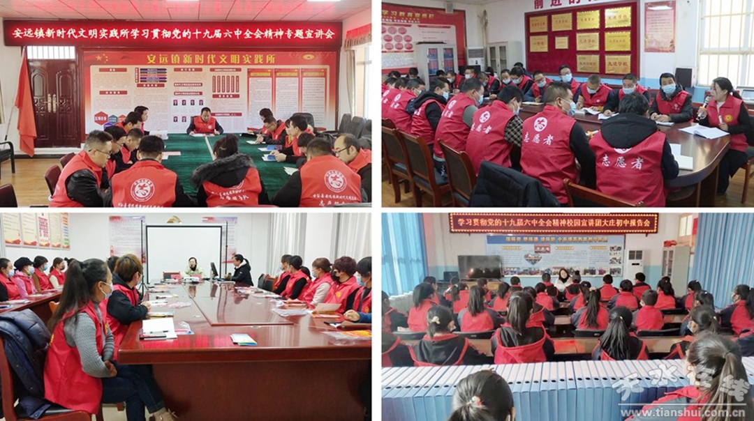 党的十九届六中全会召开以来,甘谷县把理论宣讲与新时代文明实践工作有机结合,以学习贯彻党的十九届六中全会精神为主线,着力打造“云课堂”“微宣讲”“板凳课”“炕头会”“村头宣讲”“田间宣讲”“庭院学堂”“广场讲堂”等新时代文明实践理论宣讲活动,全面掀起学习贯彻党的十九届六中全会精神热潮。