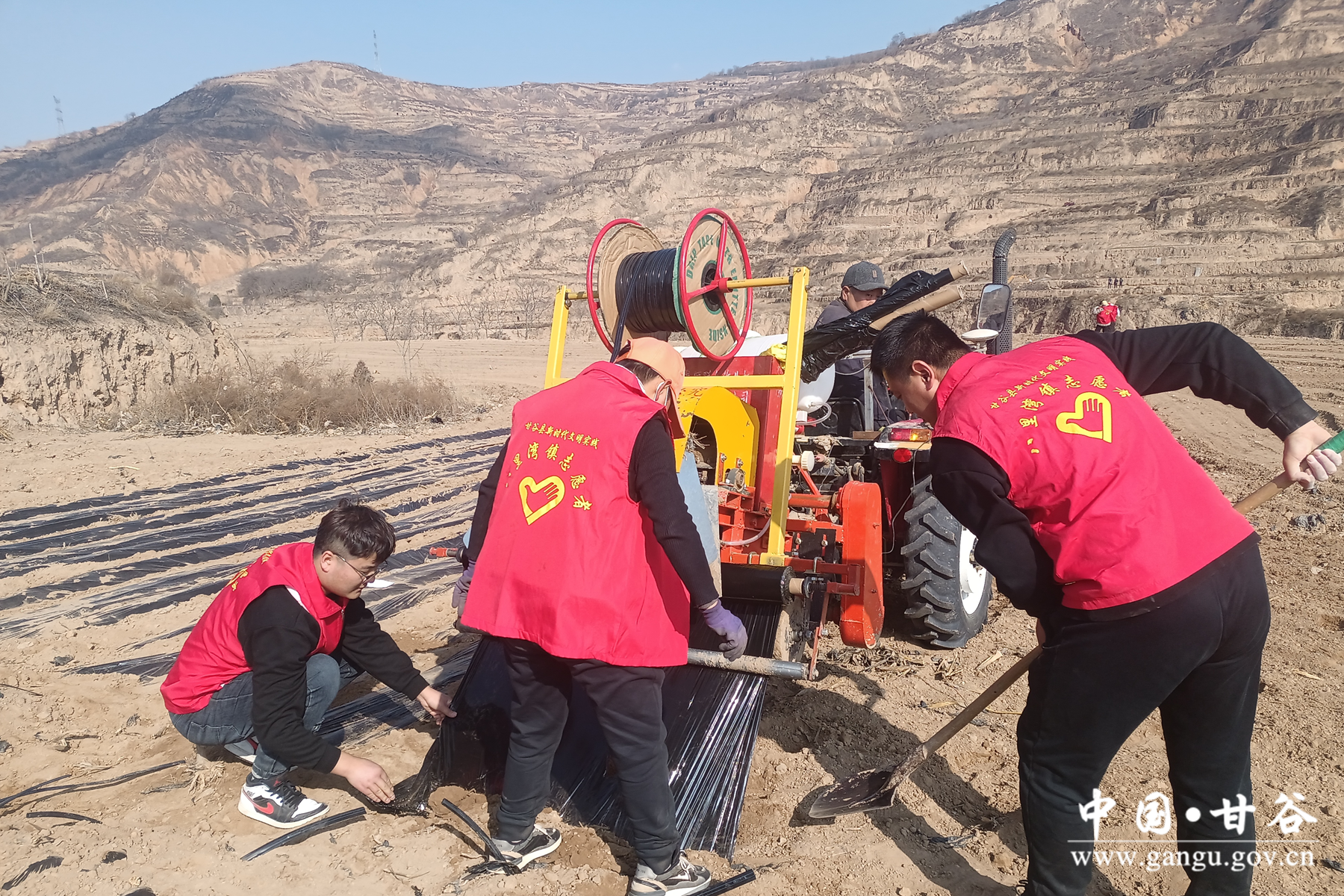 在杨家沟的田地里,村党支部书记杨炯带领全村“农机手”全面投入到春耕生产中,以“水肥一体化”甘谷辣椒种植基地为中心,统一指挥、轴线推进,统筹调度旋耕土地和覆膜工作。同时,杨家沟村党支部与城峪沟党支部联合组建党员先锋队、春耕生产志愿服务队,带头示范、组织群众、以点带面、同步推动,实现规模化、机械化、标准化春耕生产,志愿服务队在田间地头开展点对点帮助,帮助群众旋耕、撒肥料、搬运农具等,各先锋队党群联动,抢农时、备春耕,描绘出了一幅春耕农忙正当时的美丽画卷。目前,杨家沟村已旋耕土地800余亩,完成覆膜200余亩。