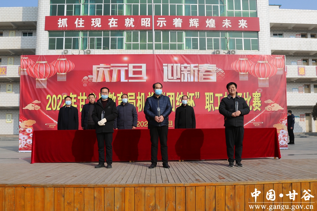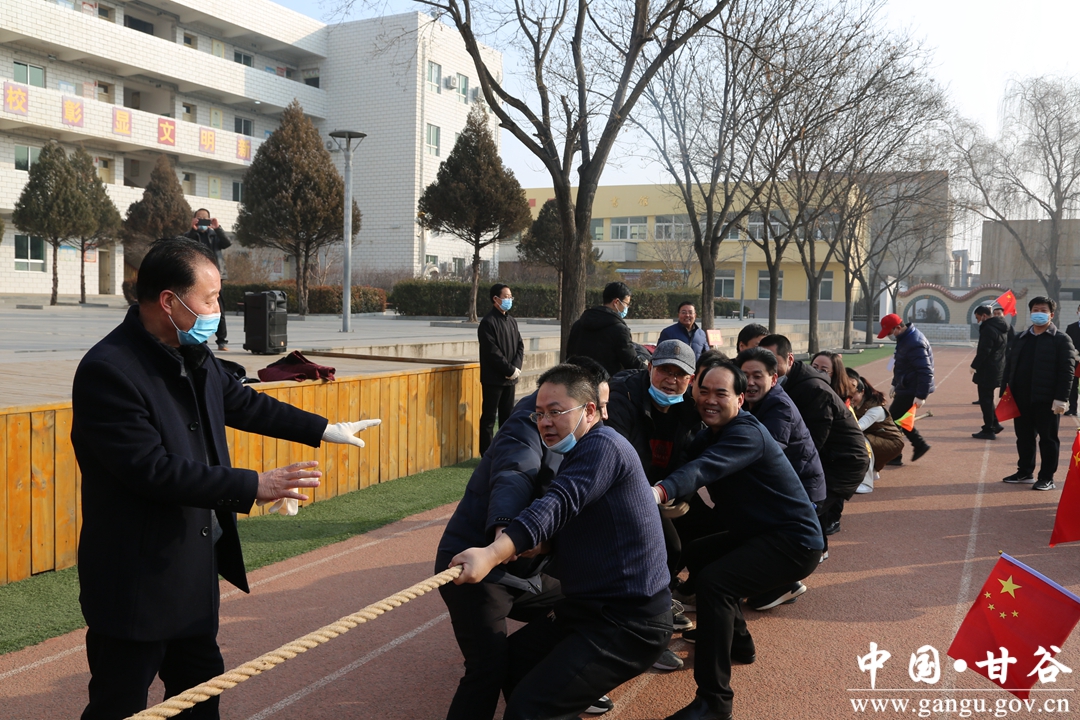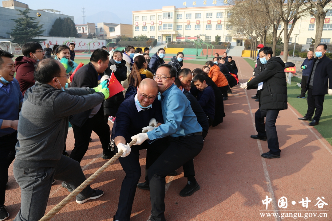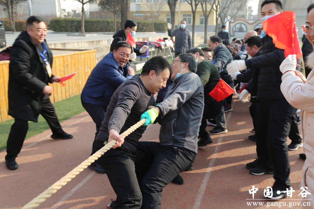 牛年谱写辉煌史,虎岁接续锦绣图。为了充分展示局机关职工的良好精神风貌和团结协作、勇于拼搏的精神,增添节日气氛,凝聚干事创业的信心和精神,形成爱锻炼、能锻炼的良好风尚,1月2日上午,甘谷县教育局利用假期时间在西关中学举行2022年机关庆元旦、迎新春“团结杯”职工拔河比赛。