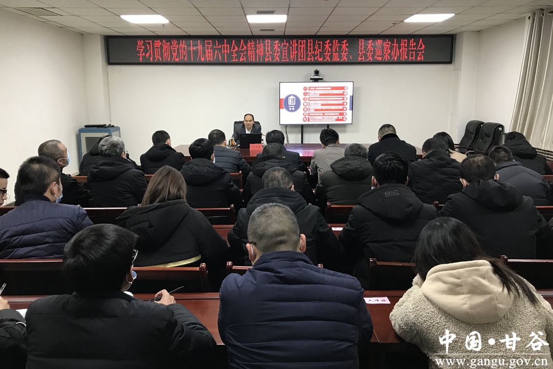 12月29日,县纪委监委、县委巡察办举办学习贯彻党的十九届六中全会精神县委宣讲团报告会。县委常委、县纪委书记、县监委主任李万举作专题宣讲报告,县纪委监委机关、县委巡察机构、乡镇纪检监察干部参加会议。