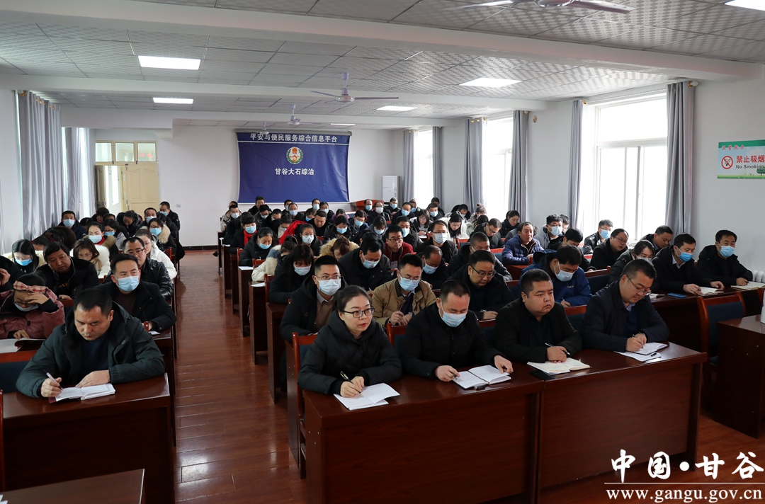 曹明忠强调,全县上下深入学习贯彻党的十九大和十九届二中、三中、四中、五中、六中全会精神,全面贯彻落实习近平总书记视察甘肃重要讲话和指示精神,统筹推进疫情防控和经济社会发展,脱贫攻坚取得历史性胜利,经济运行持续回暖向好,重点项目建设提速推进,产业发展水平不断提升,全面深化改革稳步推进,生态环境质量明显改善,社会大局和谐稳定,人民生活水平显著提高,实现了“十三五”规划圆满收官,已经开启了全面建设社会主义现代化新甘谷的新征程。县第十五次党代会明确了“十四五”时期我县经济社会发展的总体思路和目标任务,也意味着我县进入了一个全新的发展阶段。站在奋进“十四五”、开启新征程的历史起点上,大石镇广大党员干部要带头学习贯彻十九届六中全会精神,紧紧围绕县第十五次党代会确定的目标任务和全县改革发展稳定大局,认真履职尽责,主动担当作为,坚持以“产业强镇、商贸活镇、文旅兴镇、和谐安镇”为目标,紧跟形势变化,抓住发展机遇,用活用好政策,全力在推动乡村振兴、培育壮大产业、加快劳务输转、人居环境整治、建设平安乡镇等方面下功夫,着力打造历史文化名镇,奋力开创经济社会发展工作新局面。