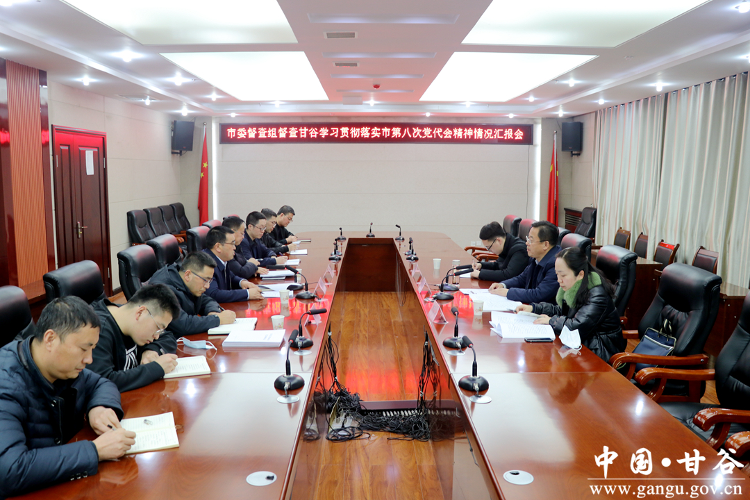 督查组指出,市第八次党代会是在“两个一百年”奋斗目标历史交汇的关键节点、开启全面建设社会主义现代化国家新征程的重要时刻召开的一次十分重要的会议,会议全面总结了过去五年我市经济社会发展成就,谋划部署了今后五年天水发展目标任务。要高度重视,切实抓好市第八次党代会精神的学习贯彻,深入学习领会精神实质,学习主题思想,学习奋斗目标,学习成功经验。要理论联系实际,抓紧贯彻落实,真正把会议精神学深悟透,谋划好发展目标,制定好落实措施,选准突破口,把学习成果转化为工作动力。要强化宣传引导,通过传统媒体与新媒体相融合的方式,多角度,多措并举推进,将学习贯彻党的十九届六中全会精神与市第八次党代会和市“两会”精神相结合,营造浓厚氛围,奋力凝聚起建设社会主义现代化天水篇章的强大精神动力。