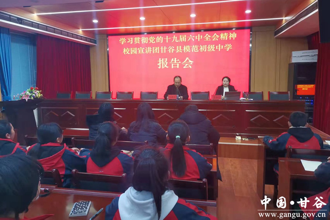 为了更好宣传贯彻落实习近平新时代中国特色社会主义思想和党的十九届六中全会精神,巩固党的基层理论阵地,结合党史学习教育,全力推进党的理论进校园、进课堂、进头脑,真正使全会精神深入广大师生心田,连日来,甘谷县教育系统采用线上和线下相结合的方式组织开展党的十九届六中全会精神宣讲进校园、进机关活动,掀起了学习宣传贯彻全会精神的热潮。通过党的十九届六中全会精神的宣讲,扎实推动了全县教育系统广大党员干部、师生学思想、悟思想,进一步把“立德树人”作为教育的根本任务,突出抓好青少年群体理论宣传教育,忠诚捍卫“两个确立”,坚决做到“两个维护”。
